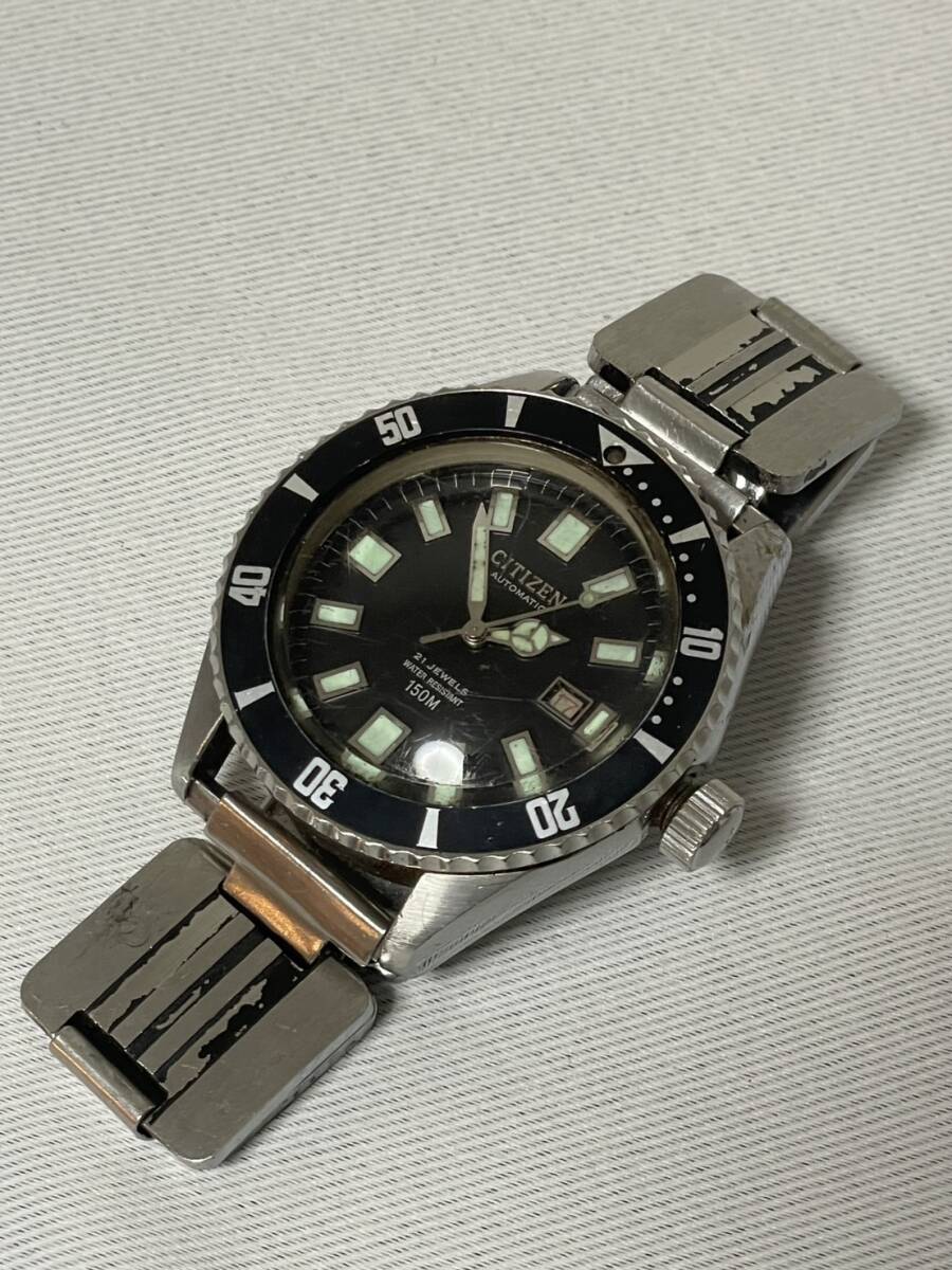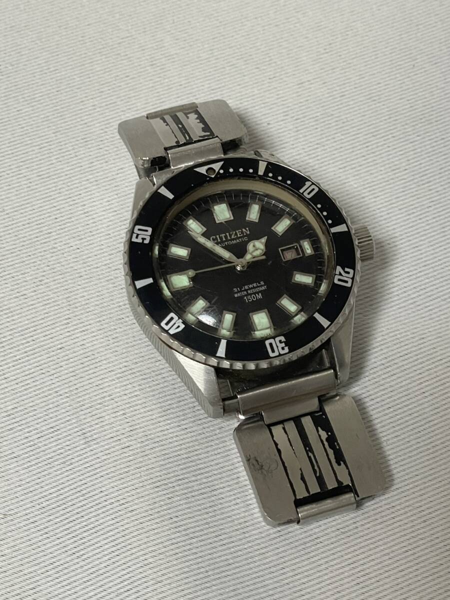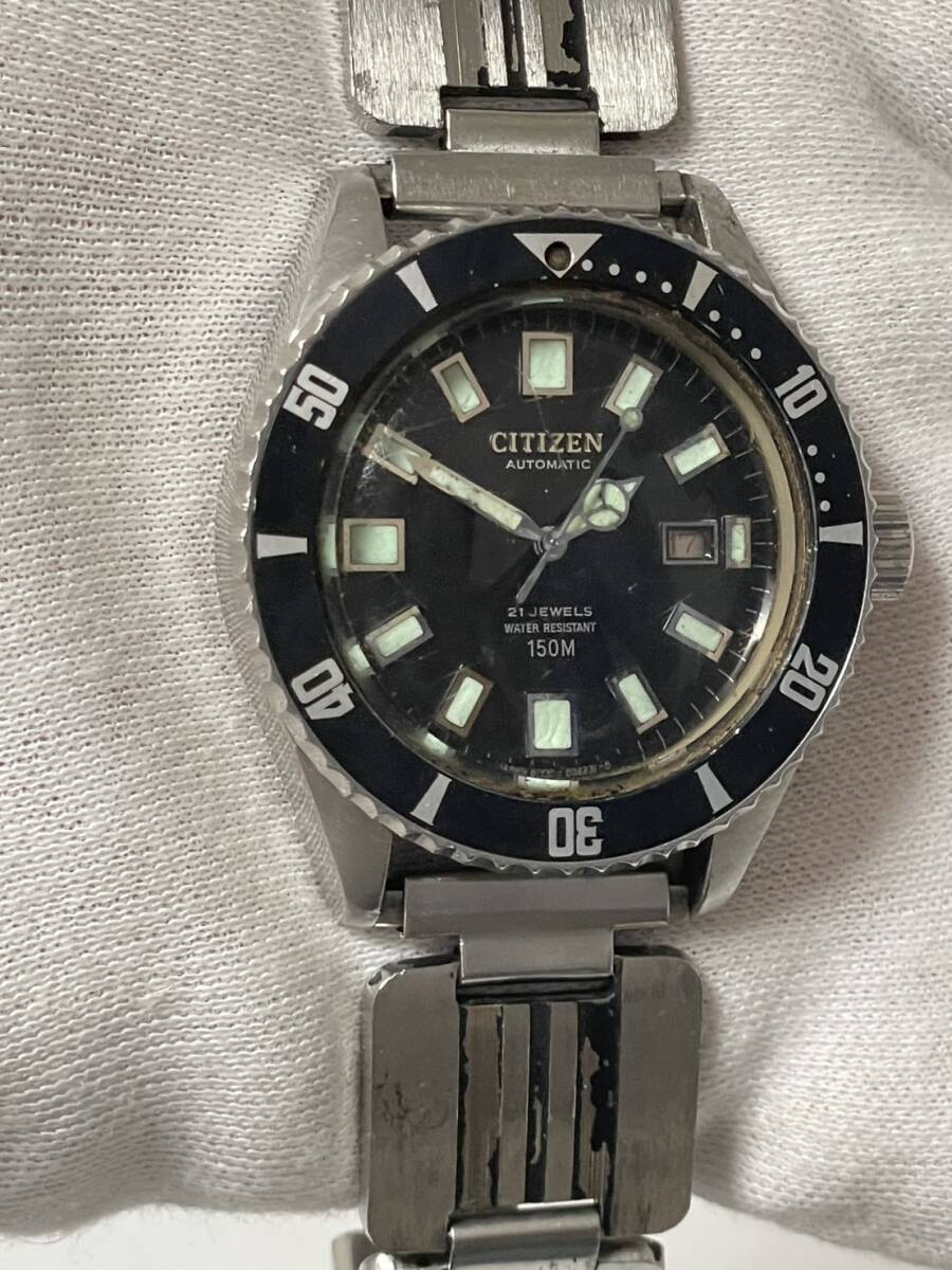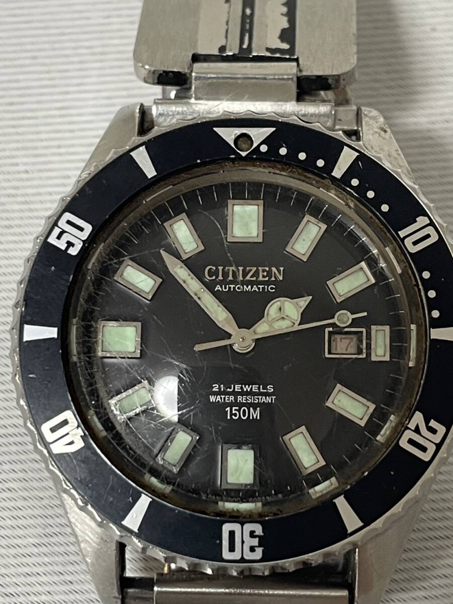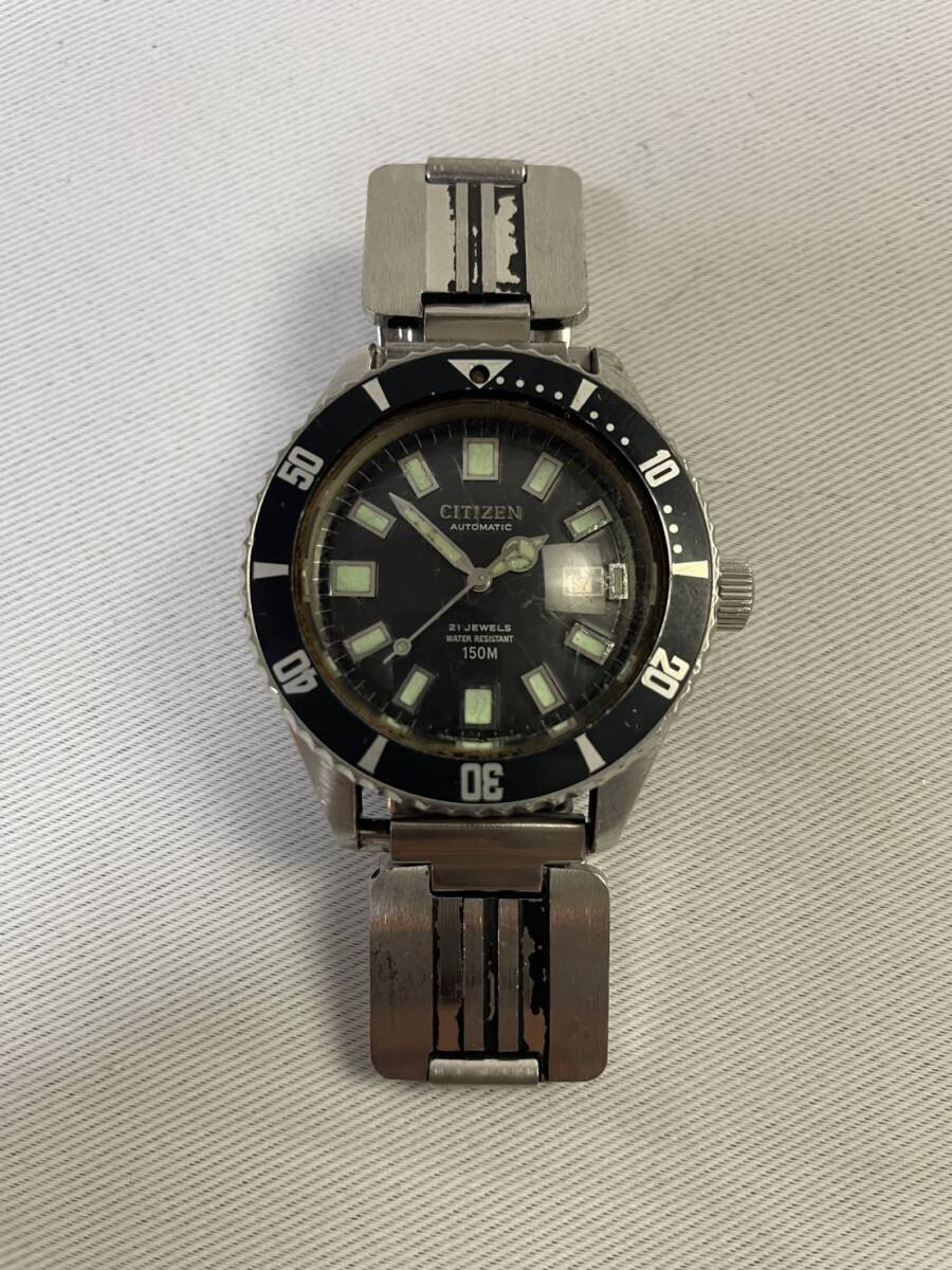 CITIZEN シチズン チャレンジダイバー150m 4-600851Y SS 21JEWELS 自動巻 AT ブラック文字盤 腕時計 本体のみ リューズ難有 稼動品 動作品