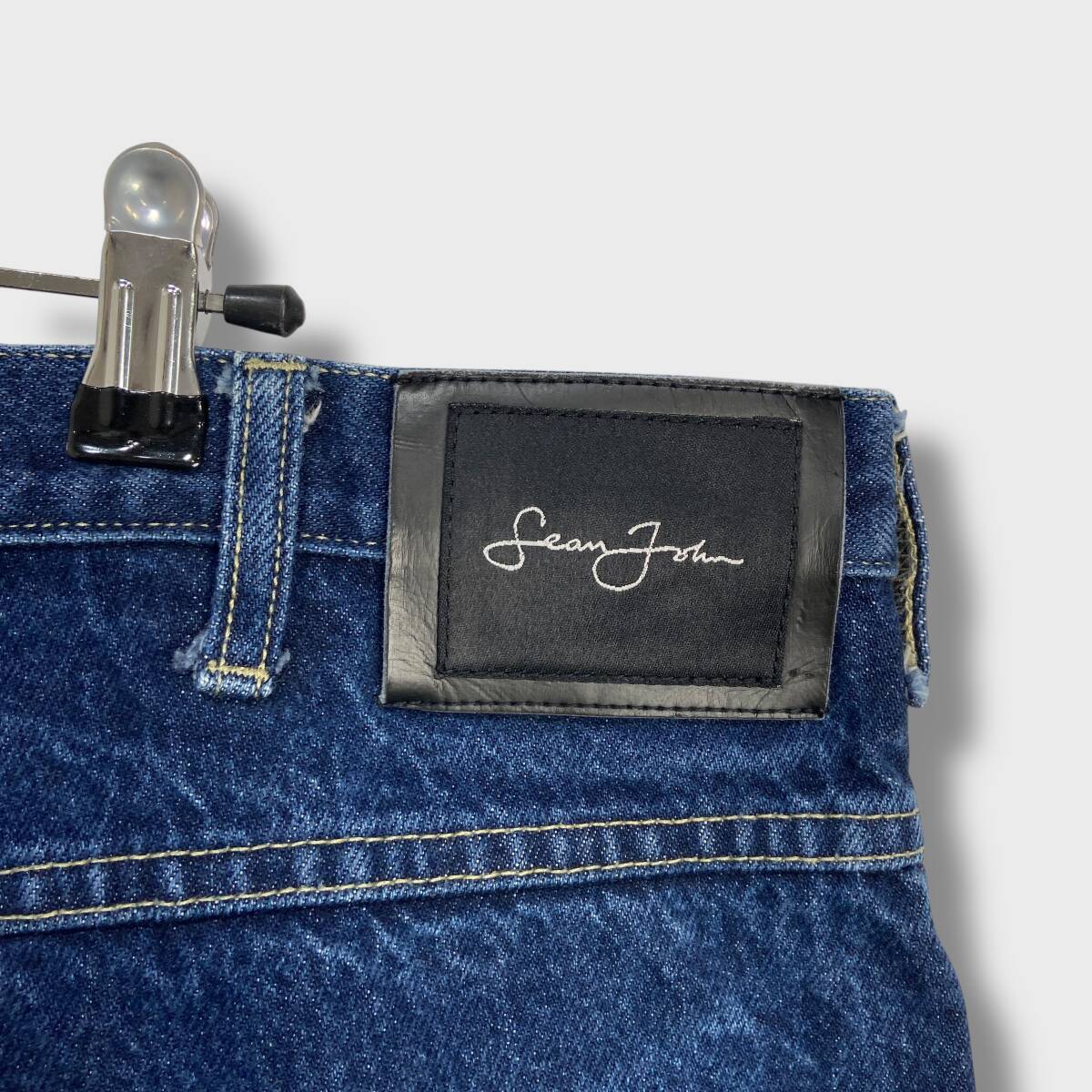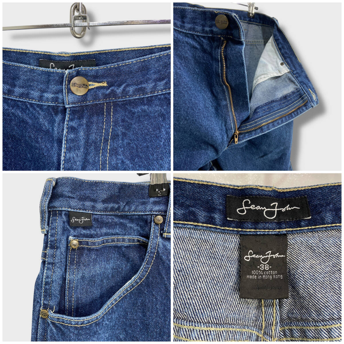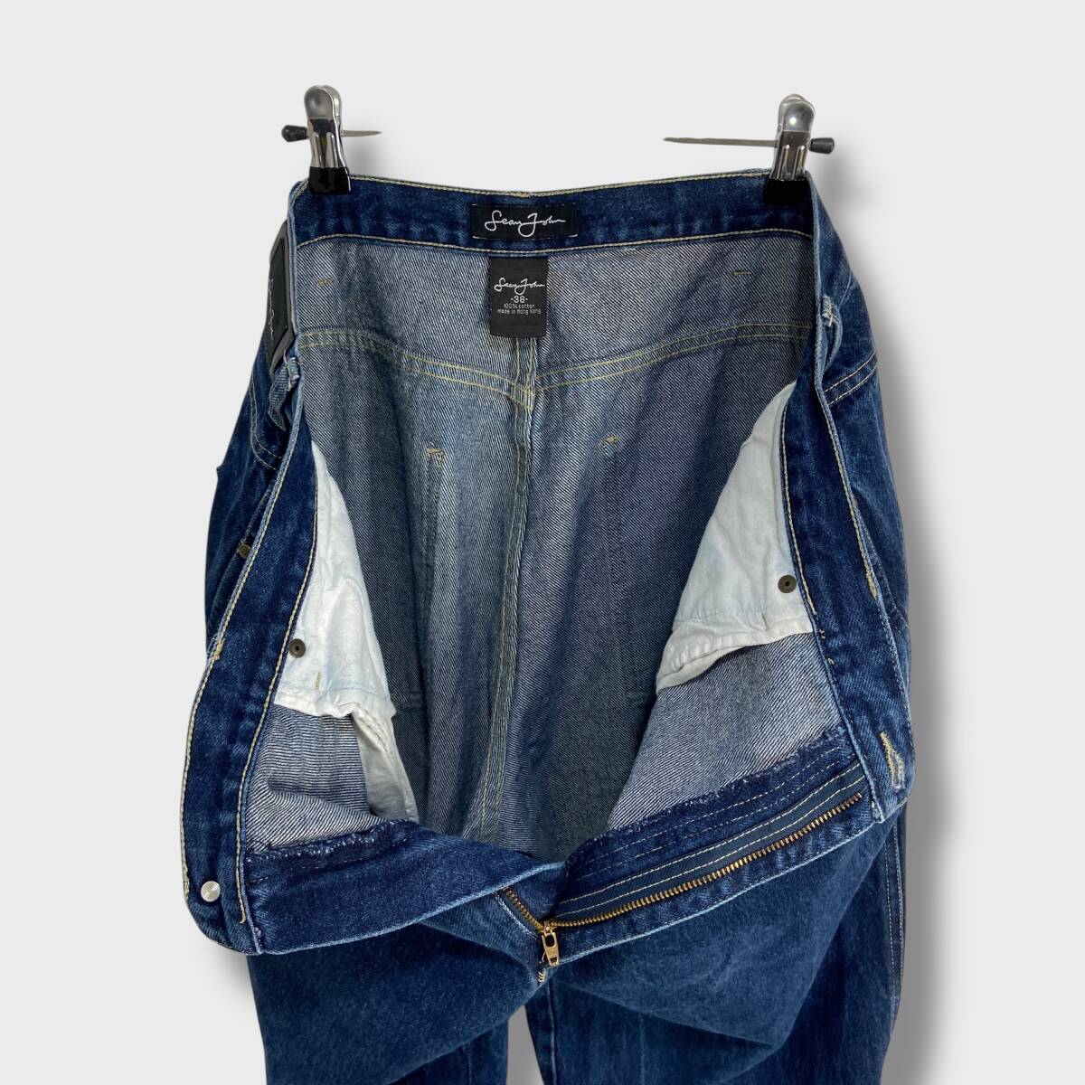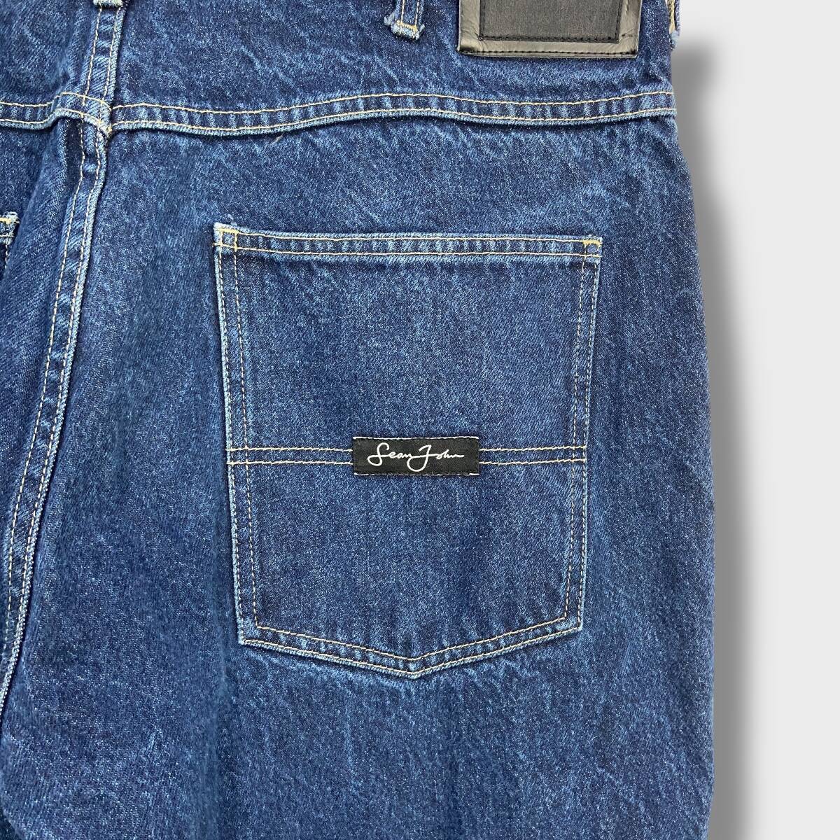 送料無料☆SEANJOHN☆ショーンジョン☆90s☆ワイドデニムパンツ☆香港製☆ビッグサイズ☆インディゴ☆W38☆H25M