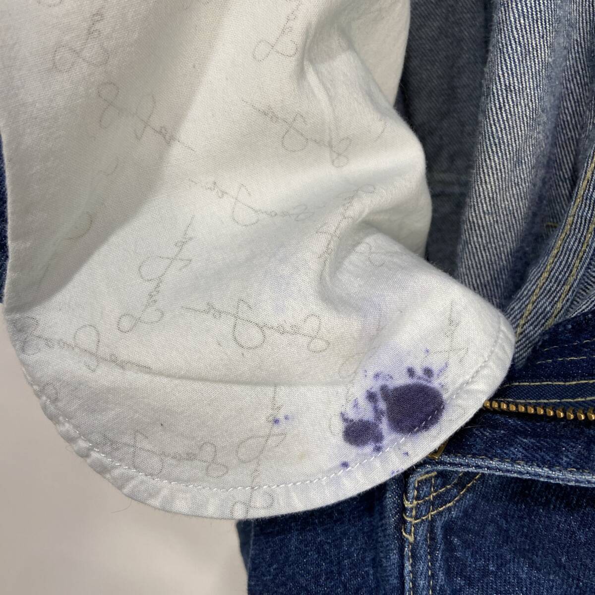 右ハンドポケットの裏地にインク痕があります。
