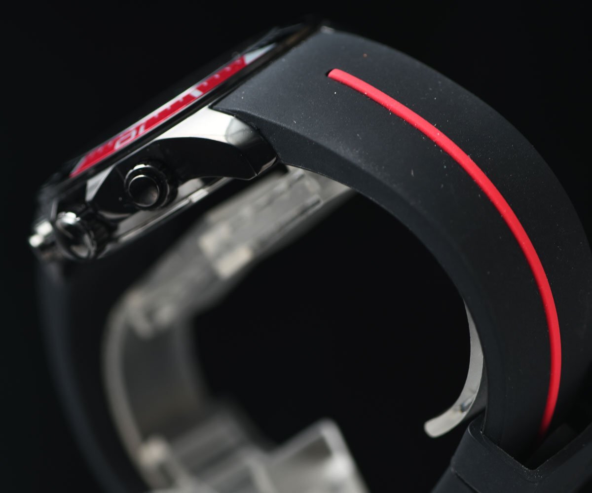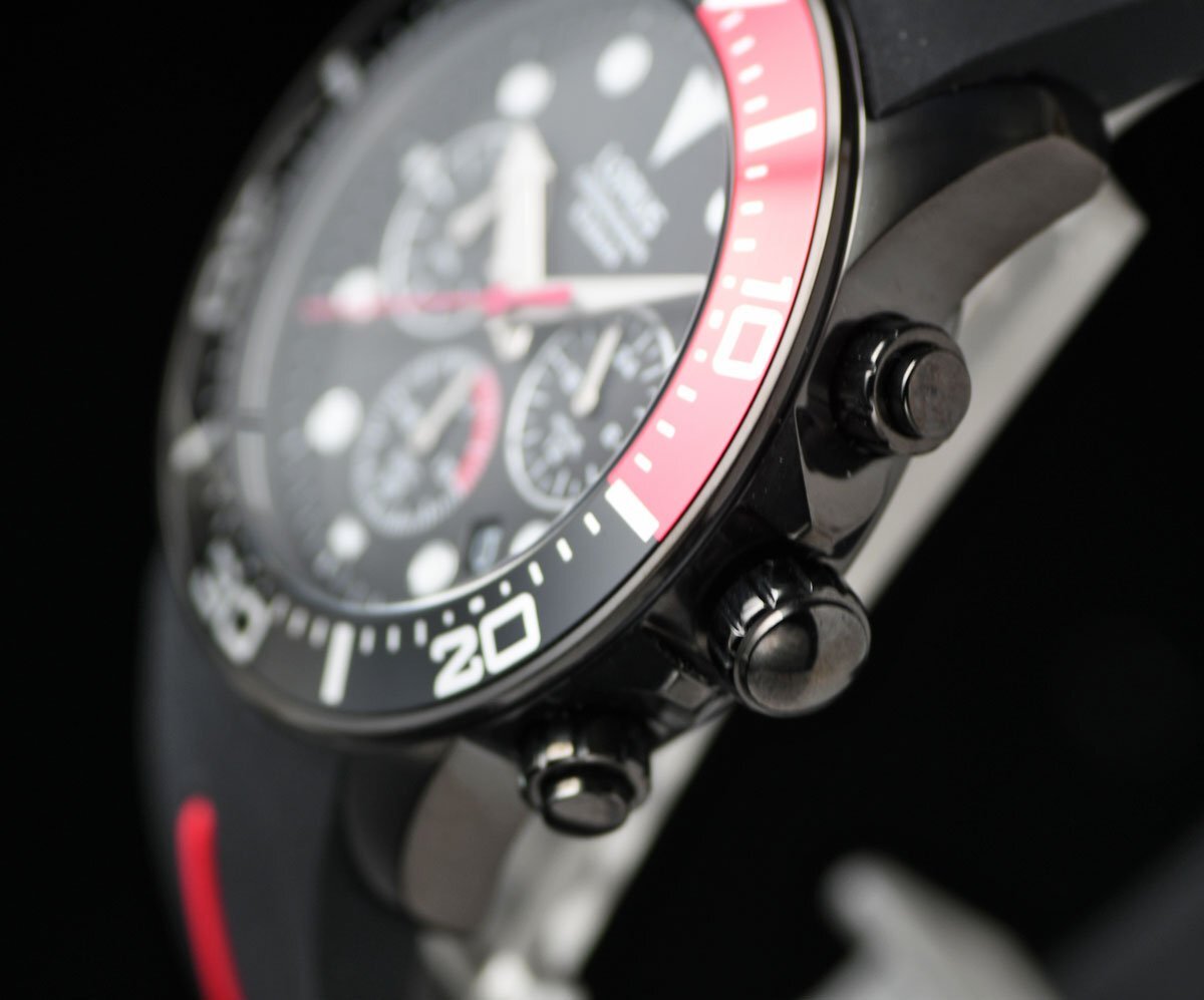 セイコーLORUS 新品 100m防水クロノグラフ 精悍ブラック&レッド 逆輸入 ヨーロッパ 新品メンズ 激レア日本未発売 ローラス