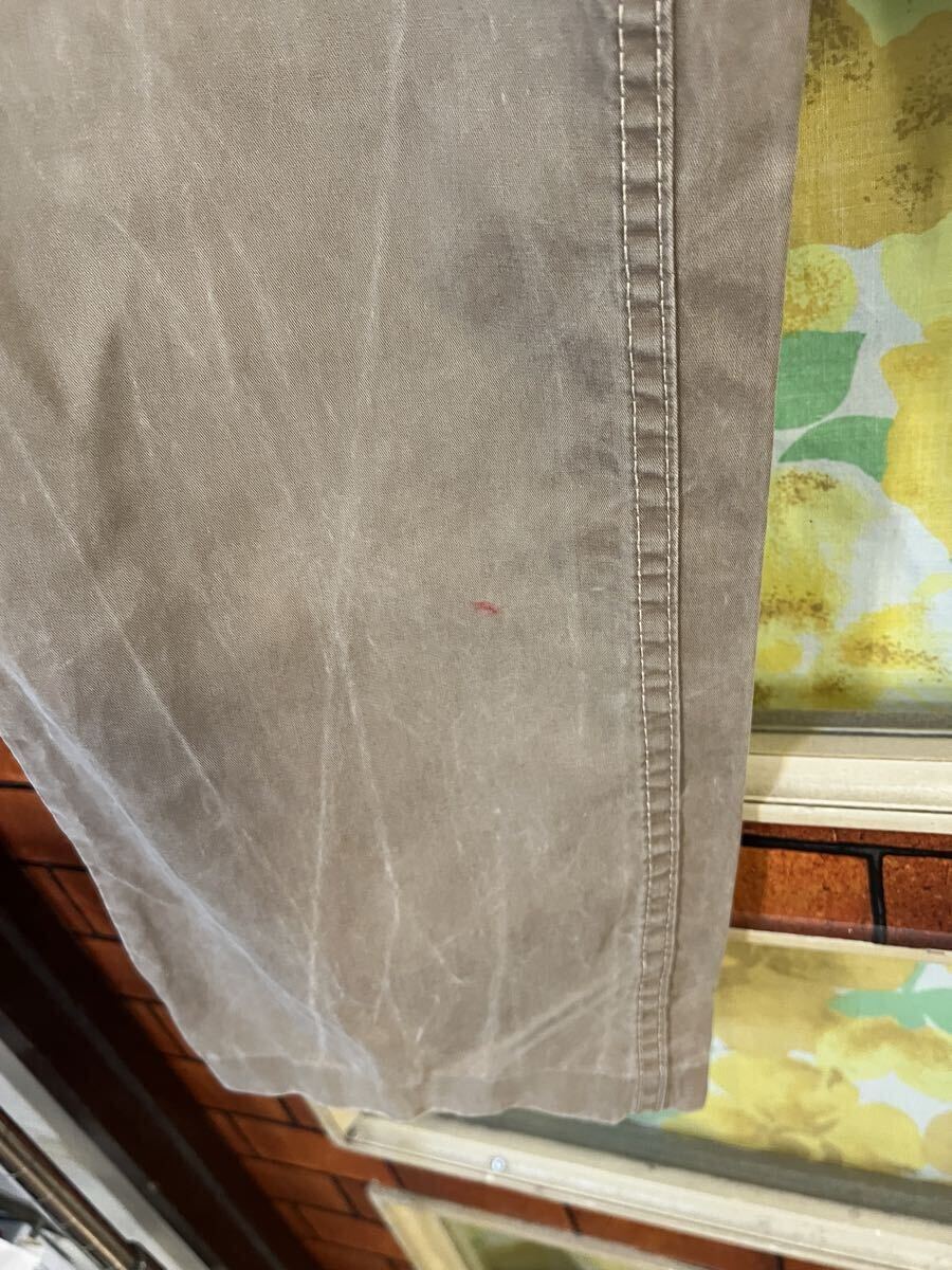 多少のシワ写真でみられますが、アイロン、洗濯などでまだまだ使えます。軽く洗濯済みの状態です。あくまでも人的な為。