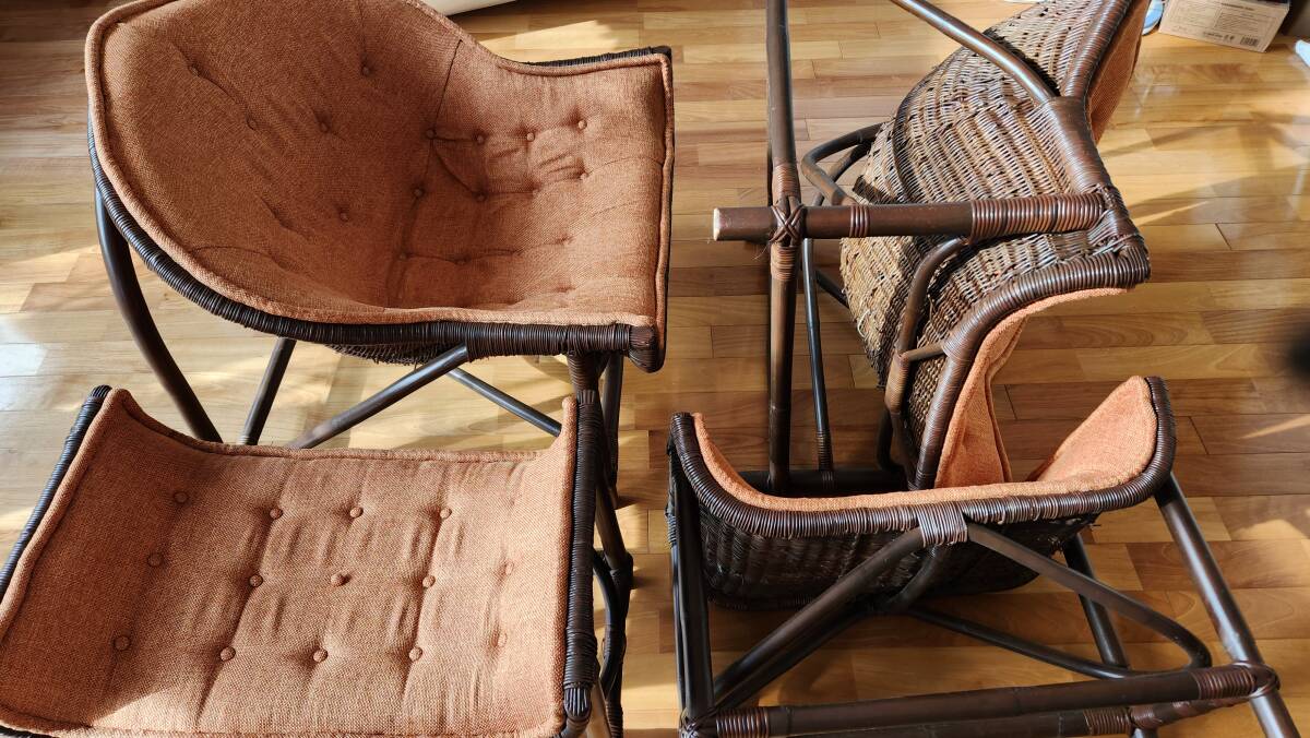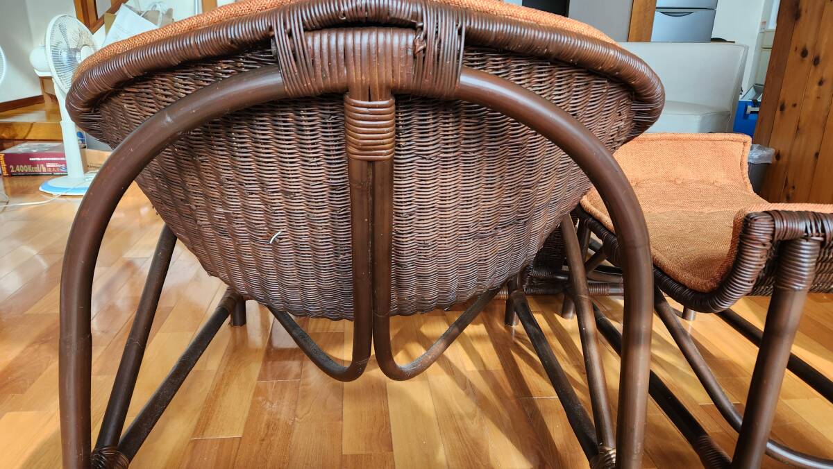 籐製いす×2。付属オットマン×2。昭和30年頃製作の商品。