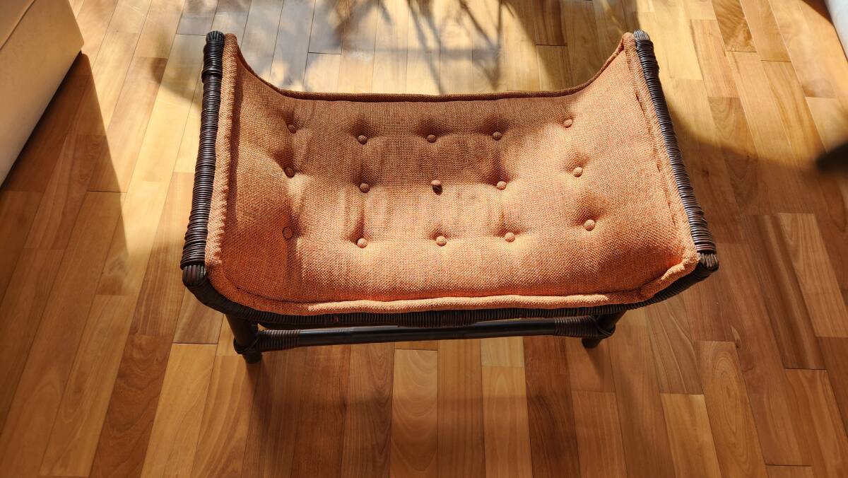 製品は某大手食品会社の会長が、神奈川県三浦市の油壷の別荘にて使用していた物を譲り受けたものです。その後、3回ほど全体補修をし、5回ほど布の張替えを実施しています。(某食品会社の会長さんの話では、駐日大使が別荘にて使用していた物を、会長さんが譲りうけたとのことですが、こちらの真偽は定かではありません)