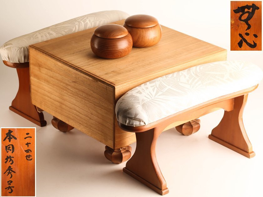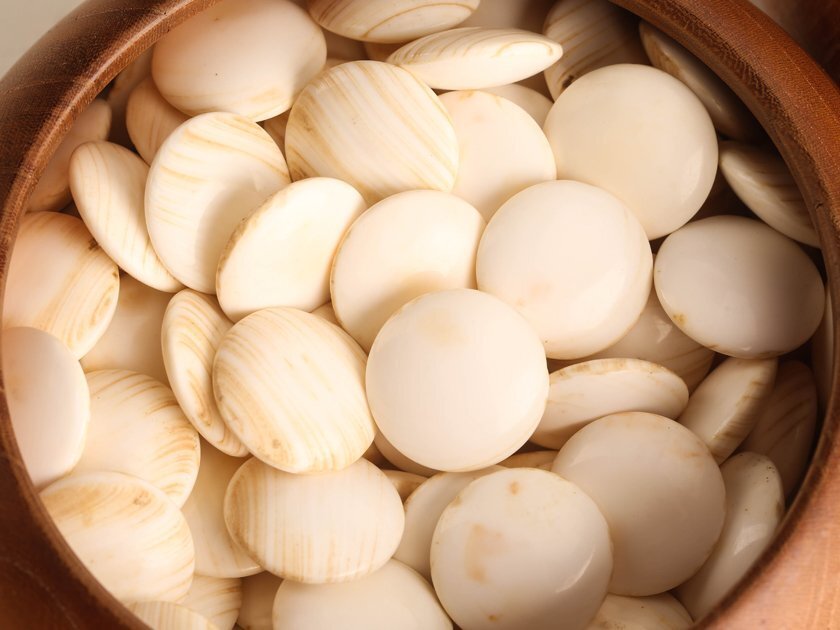 サイズ | 碁盤 幅 約41.7×45.5cm 高 約30.2cm 盤厚 約18.2cm 白176個 黒180個 28号 |