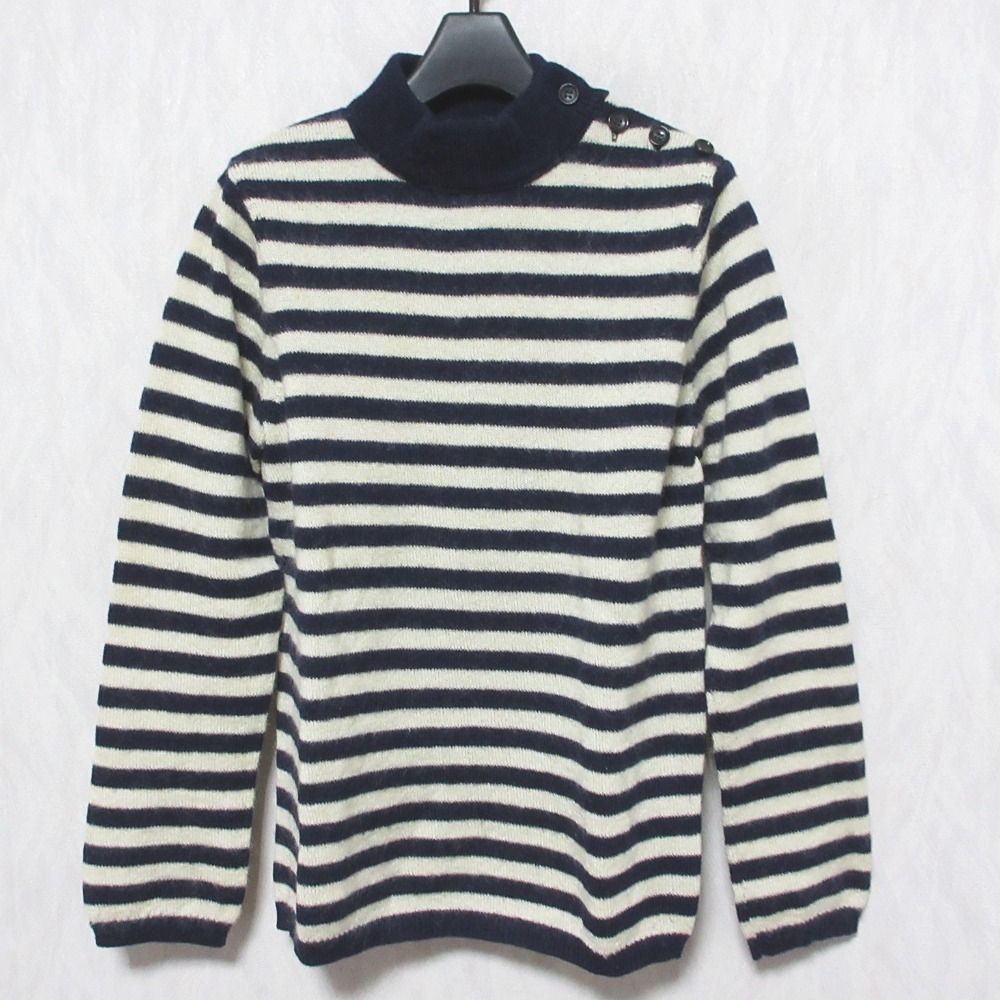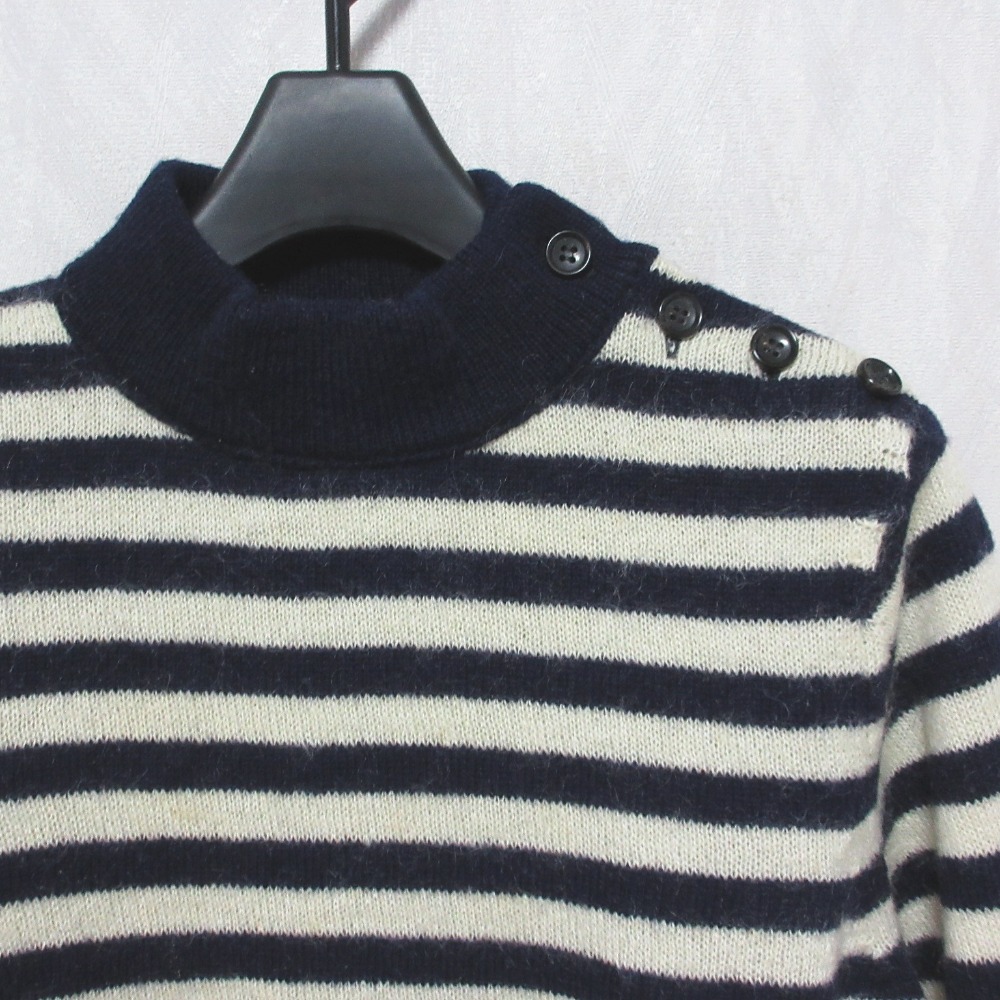 美品 robe de chambre ローブドシャンブル コムデギャルソン モヘヤブレンド ボーダー柄 マリンニット セーター AD2003 ネイビー系