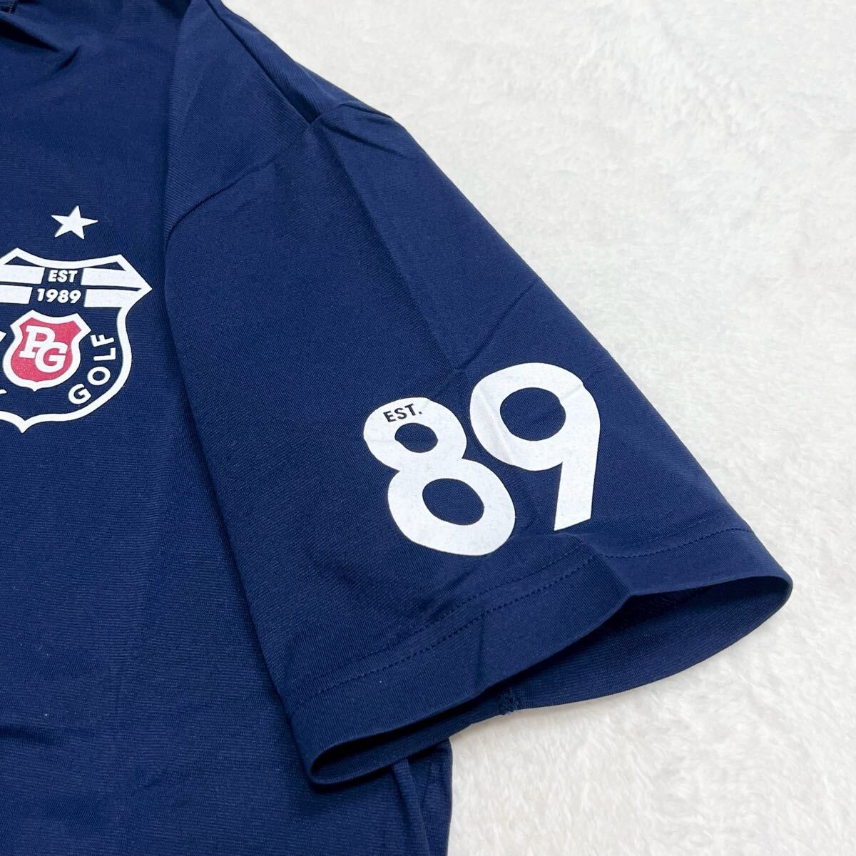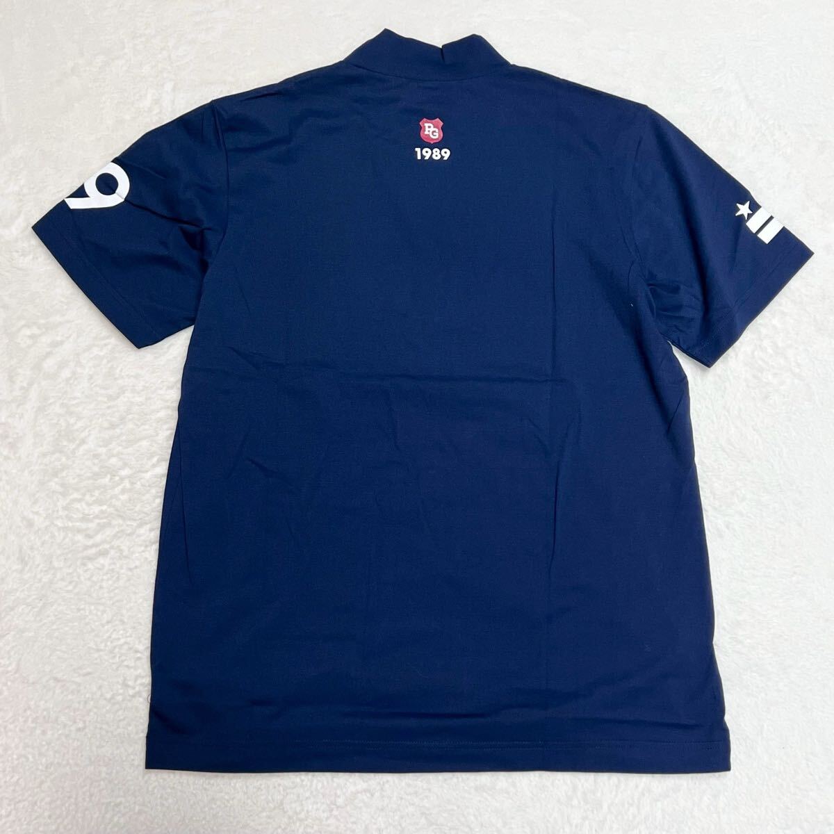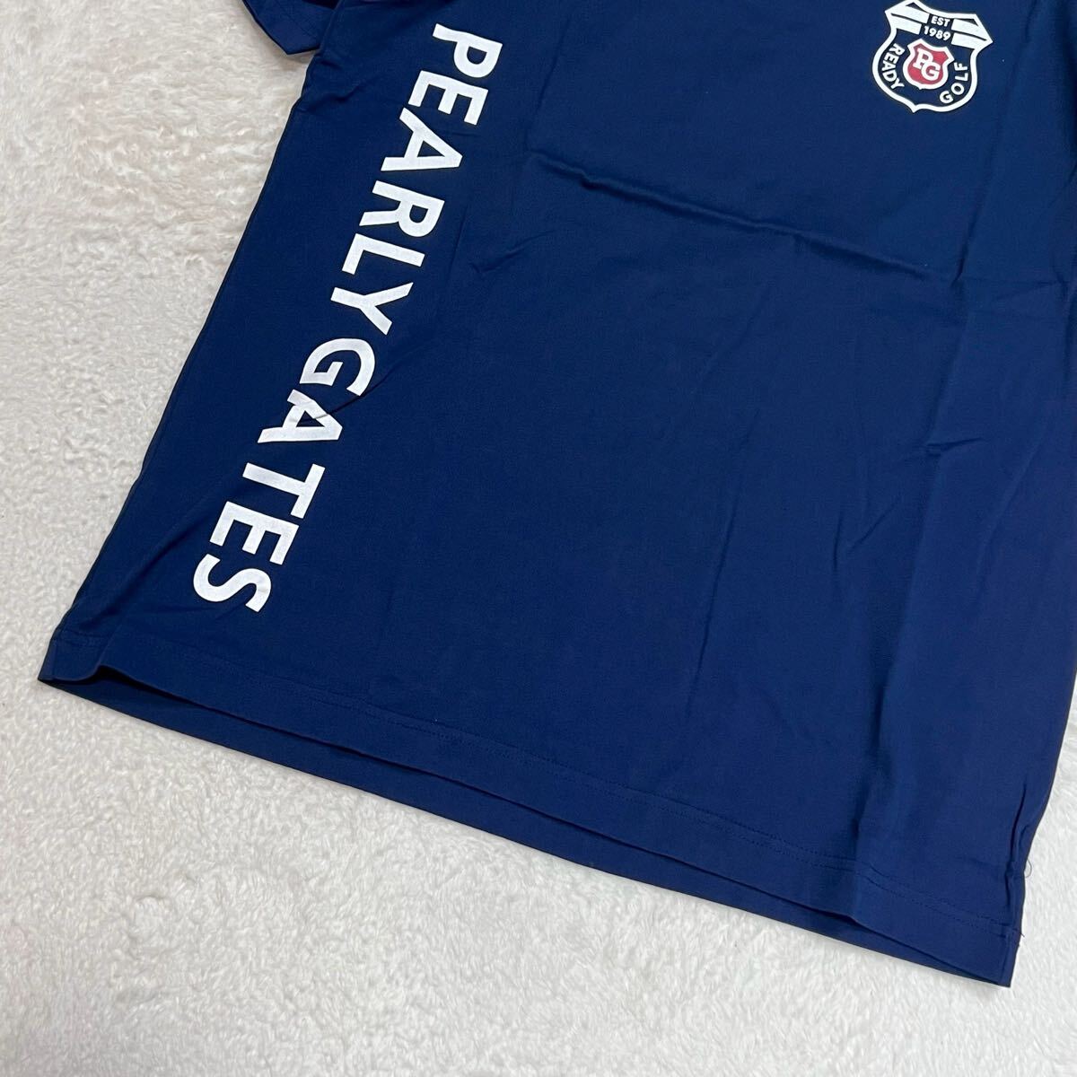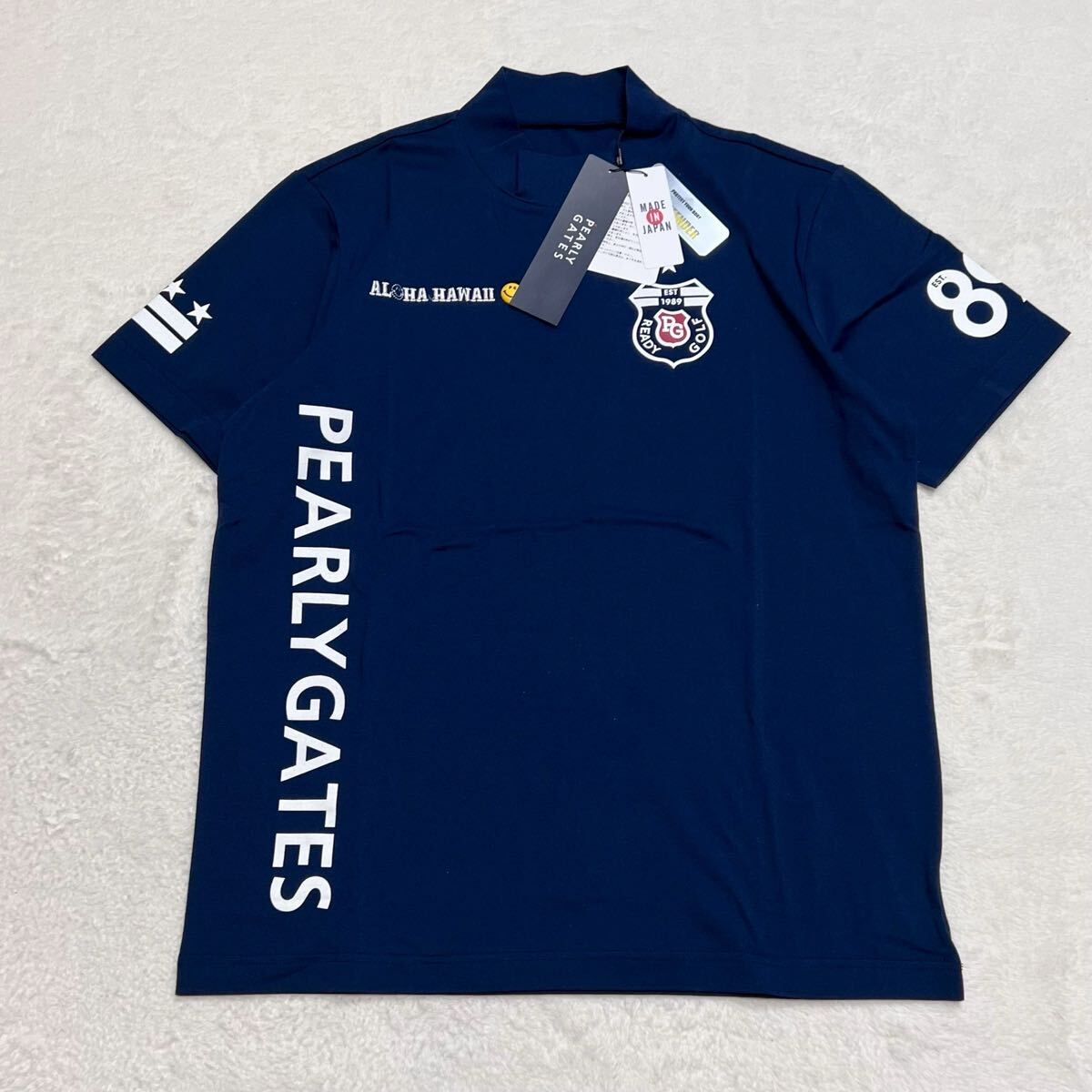 【新品 Lサイズ】PEARLY GATES パーリーゲイツ シャツ ハイネック ロゴ ニコちゃん 日本製 洗える タグ付き 半袖 近年 伸縮性 SIZE5 紺