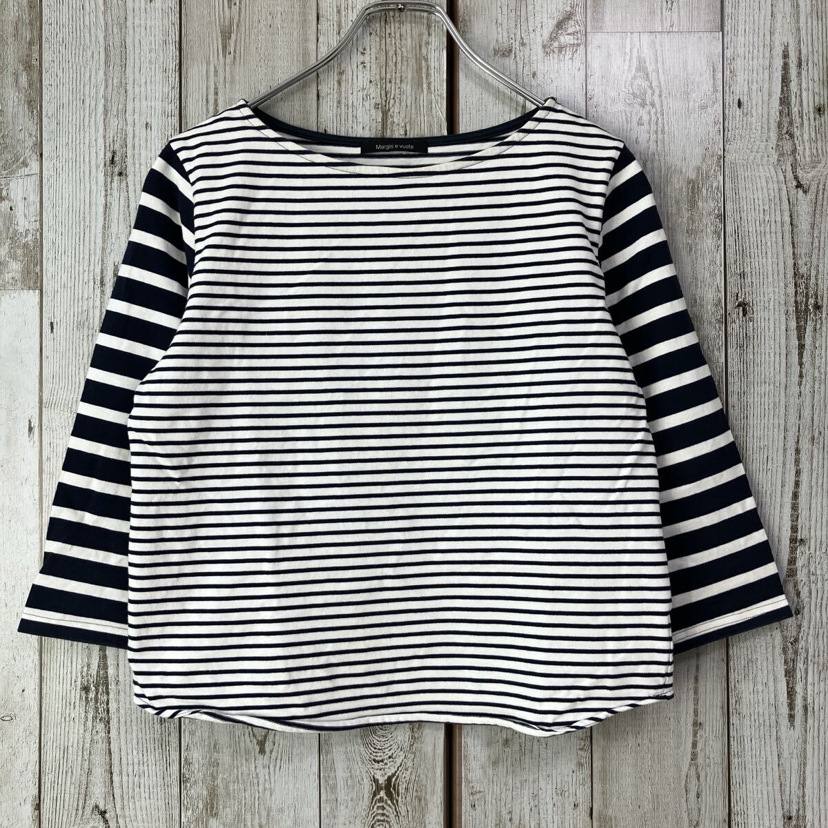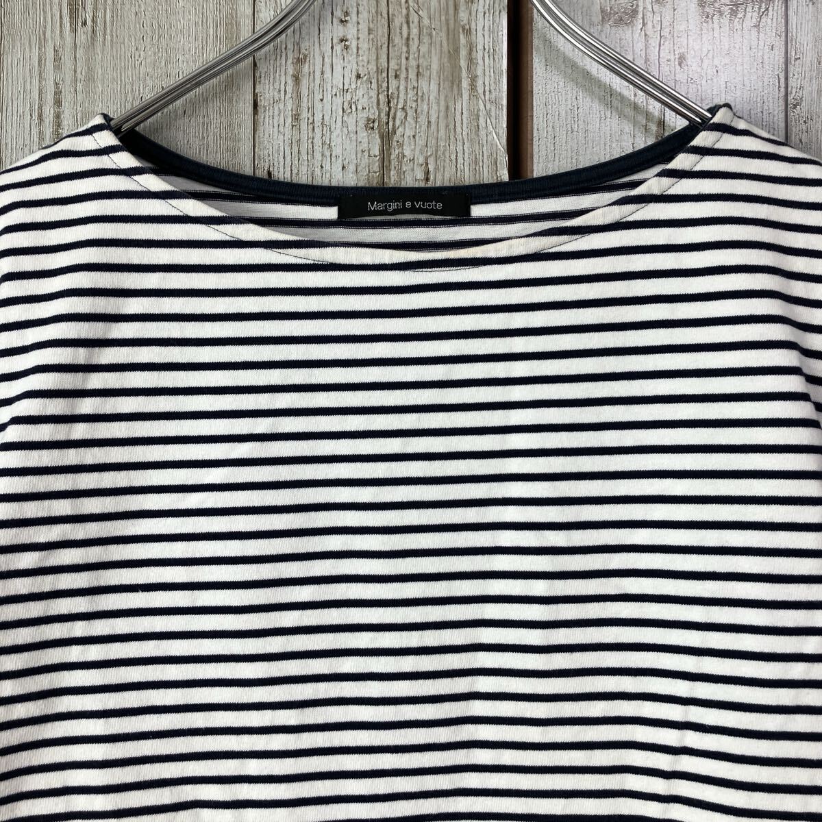 ☆Margini e vuote マルジニエボーテ☆カットソー Tシャツ 七分袖 ボーダー ボートネック F レディース ホワイト ネイビー [送料無料]s5735
