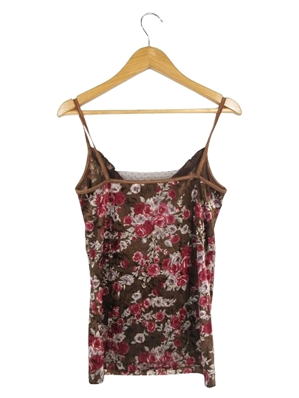 メロディースクエア MELODY SQUARE キャミソール レース ベロア 花柄 ブラウン QQQ レディース