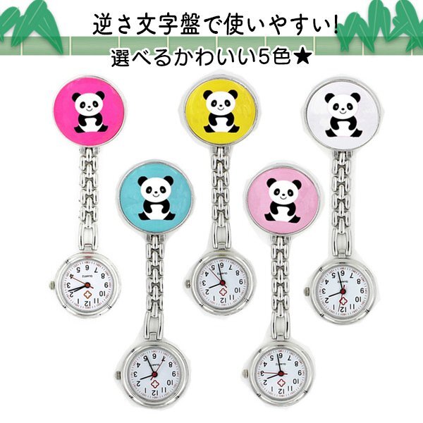 送料無料 新作パンダ ナースウォッチ クリップ付き / 5色から選択! クリップ式 懐中時計 逆さ文字盤 パンダ レディース