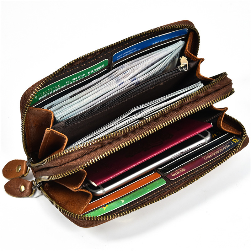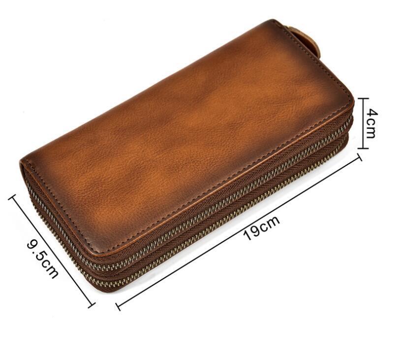 長財布 セカンドバッグ クラッチバック 本革 牛革 メンズ ダブルラウンドファスナー型 大容量 多機能 ストラップ付き ダークブラウン
