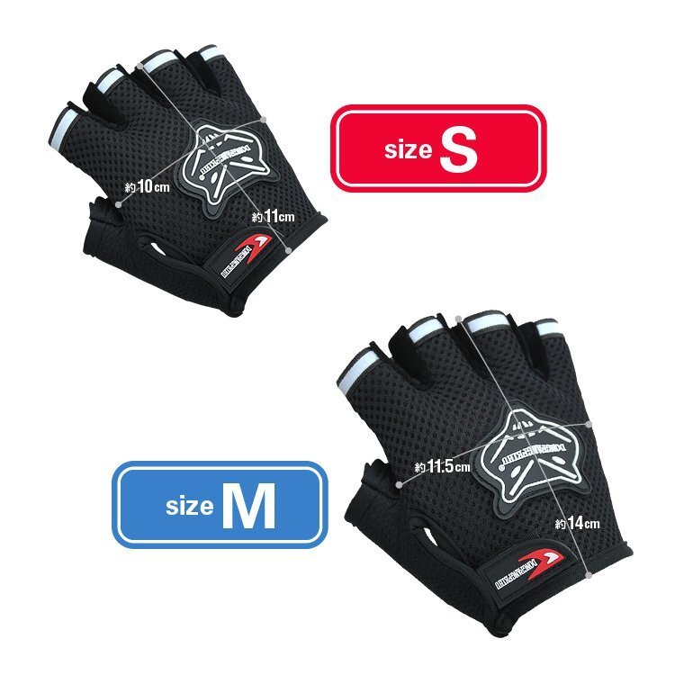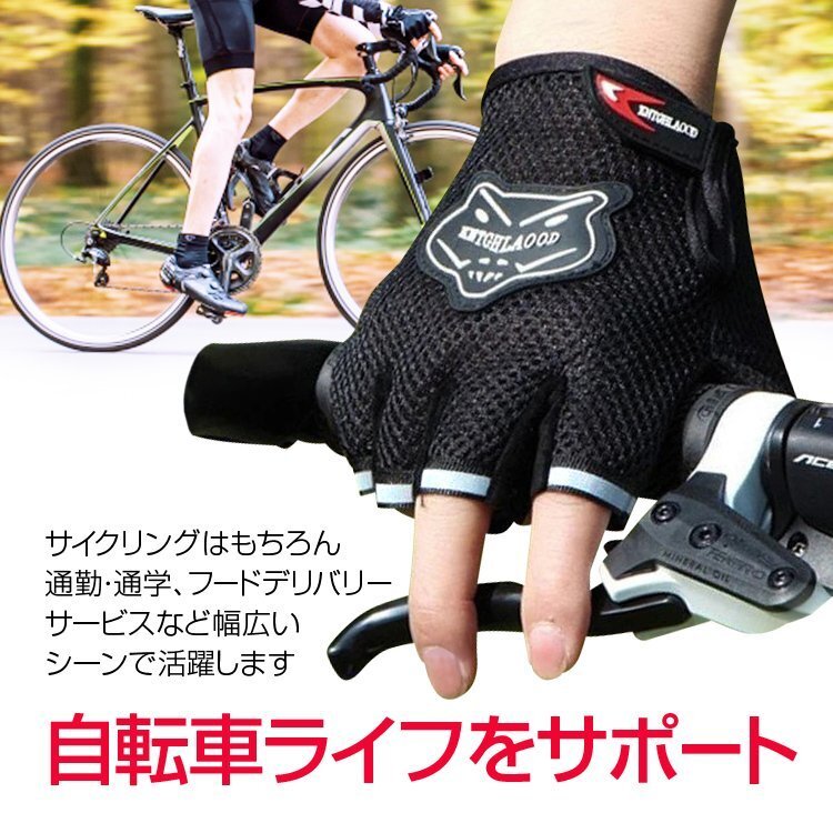 ◆サイクルグローブ ハーフフィンガー メッシュ素材 心地よい肌触り 自転車グローブ 夏用指切りタイプ 衝撃吸収 反射材付き 大人/子供サイズ選択可 通勤通学デリバリーなどに【M大人向け】 FOXYBGL203