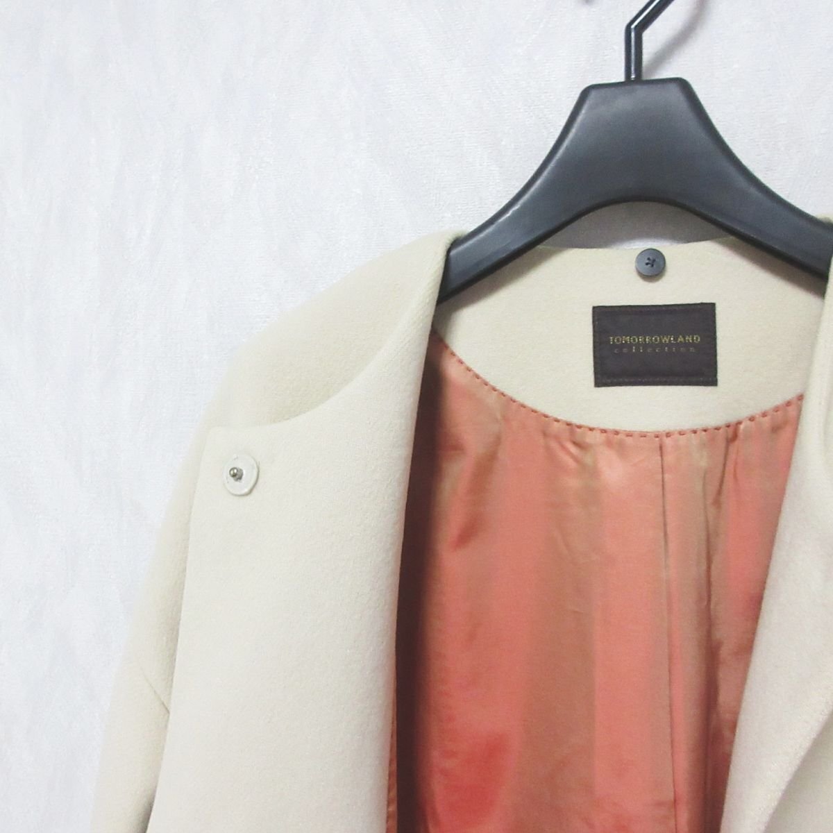 美品 TOMORROWLAND collection トゥモローランドコレクション ストール付き ノーカラーコート 36 ベージュ