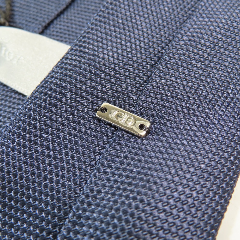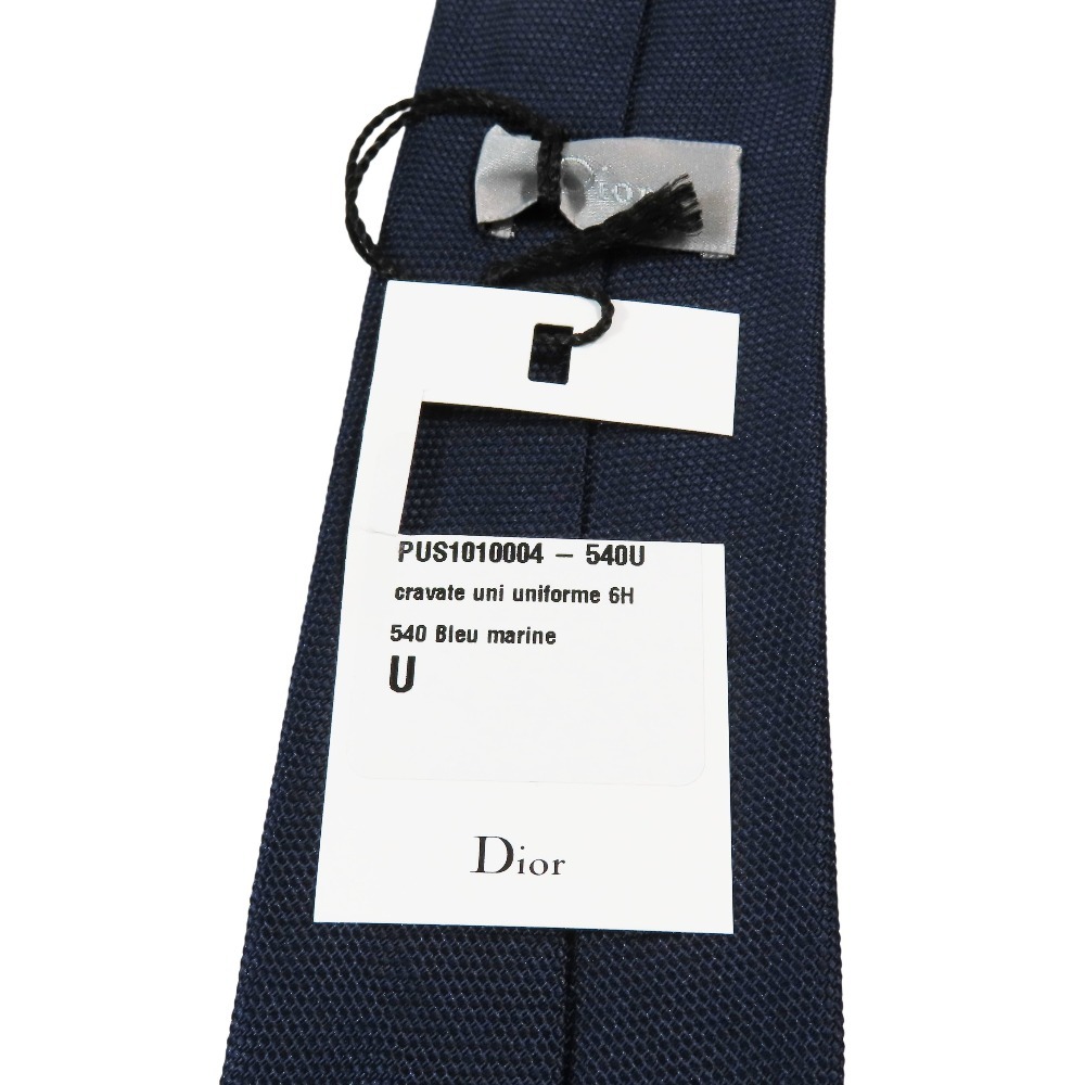 未使用 DIOR ディオール シルク100% ネクタイ ナロータイ CDロゴプレート ビジネス スーツ フォーマル 無地 ネイビー ブルーマリン