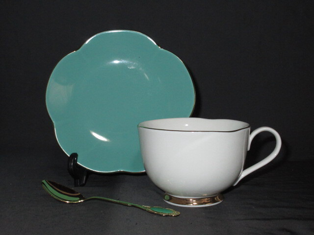 横浜陶苑・翡翠白磁金彩 C&S 5客組・金メッキ スプーン付