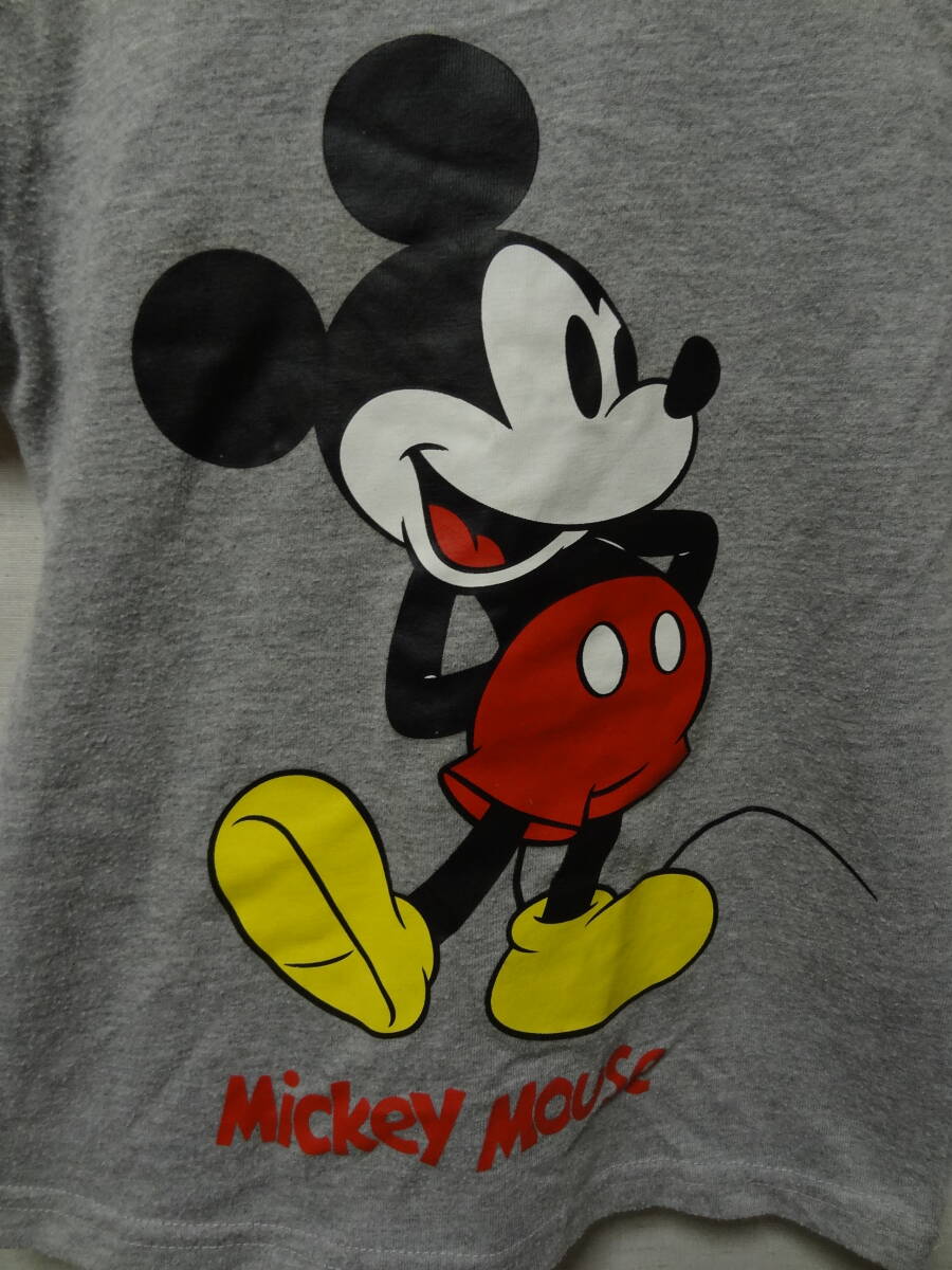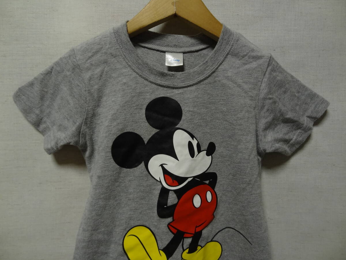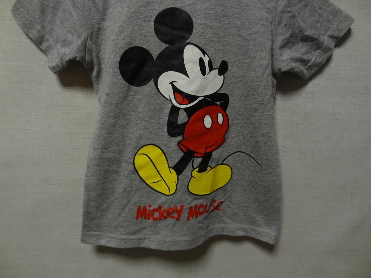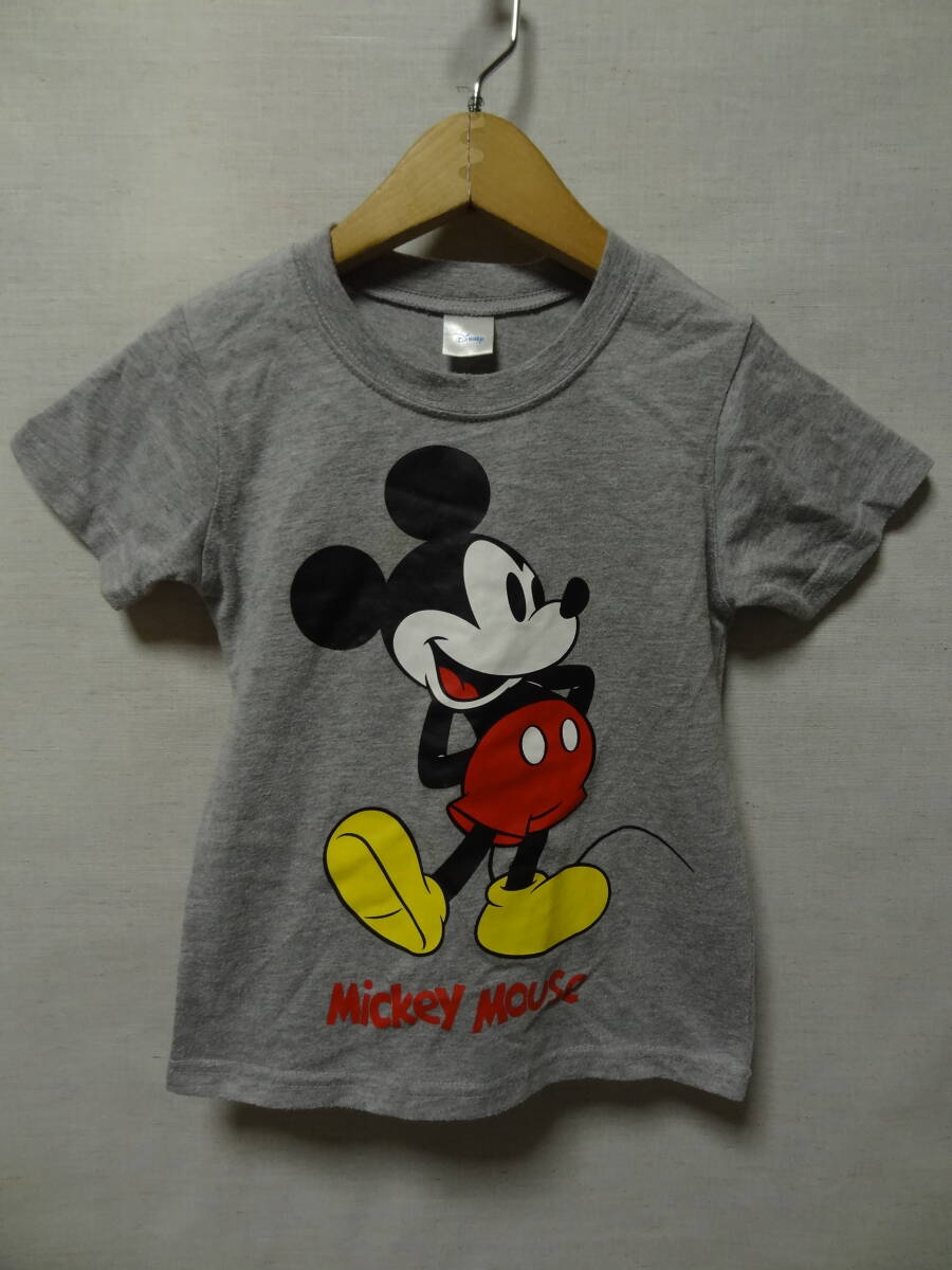 全国送料無料 定番ポーズのミッキーマウス 子供服キッズ男&女の子 半袖 杢グレーTシャツ 110