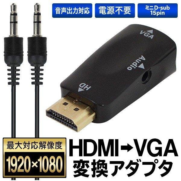 HDMI VGA 変換アダプター 1080P対応 音声出力対応 電源不要 プロジェクター モニター 映像機器 パソコン 送料無料 50K◇ HDMI変換VGA