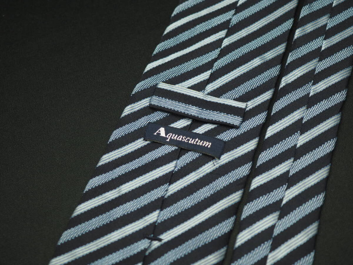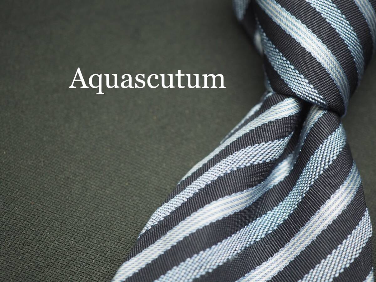 美品【Aquascutum アクアスキュータム】 F1421 ネイビー系 SILK ブランド ネクタイ 古着 良品