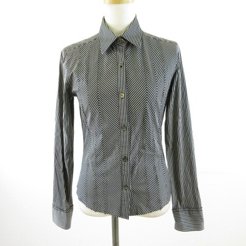 ケーティー キヨコ タカセ K.T KIYOKO TAKASE シャツ ブラウス 長袖 ヘリンボーン ストライプ 黒 9 *T923 レディース