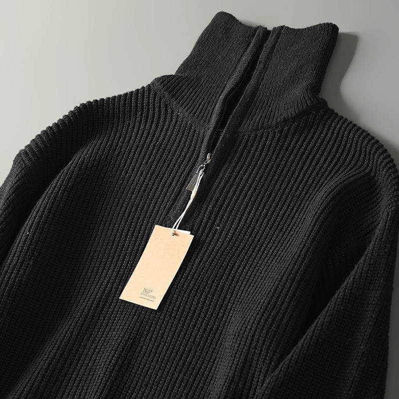 A523-Lブラック 立ち襟 ニットセーター メンズ ウール混 新品 ニットソ 暖かい 通勤 厚手 秋冬 カジュアル ハーフジップ 洗えるニット