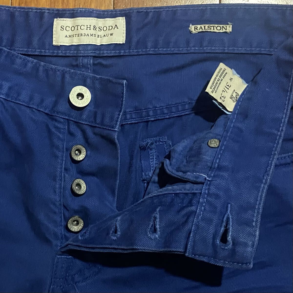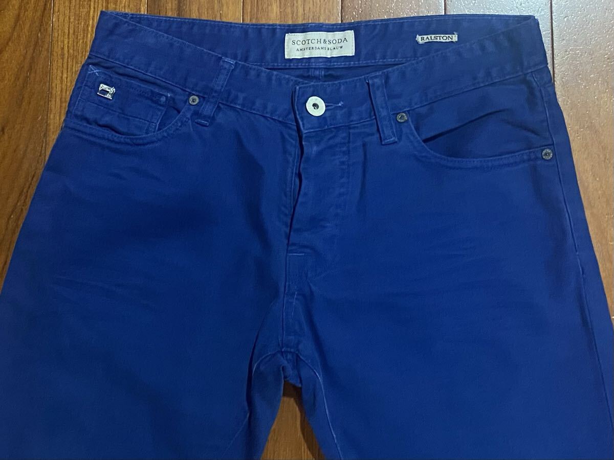 スコッチアンドソーダのスキニーデニム(ジーンズ)、RALSTON 1305.12.85990です。色はブルーです。USEDで裾直ししておりますが状態は良いです(10段階中8程度)。生地は綿100%です。革パッチ、ボタンフライです。正規品です(インドネシア製)。サイズはW31でウエストは重ねずに平置きで約79cm、ヒップ約102cm、股上約24cm、股下約71cm、股下15cmのふともも部分約49cm、裾まわり約35cm、重量約510gです。発送はゆうパケットポストになります。