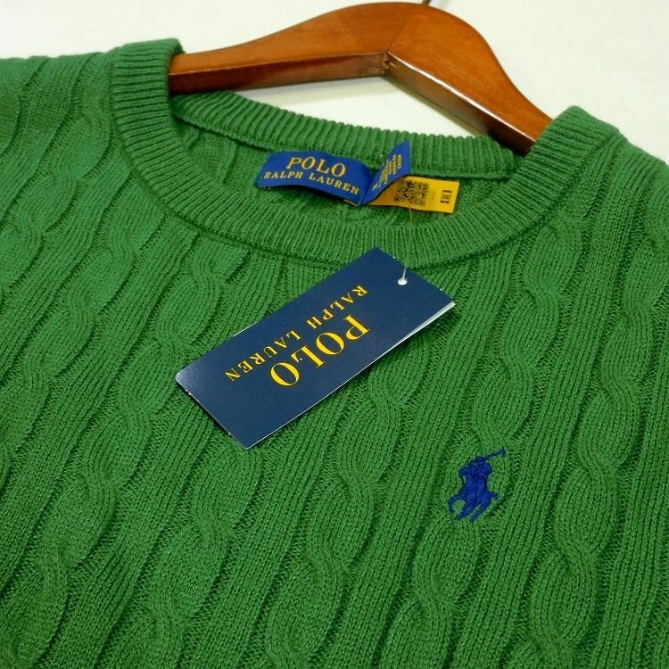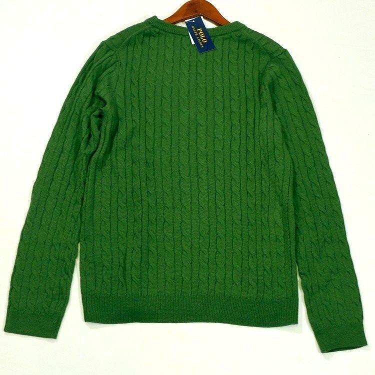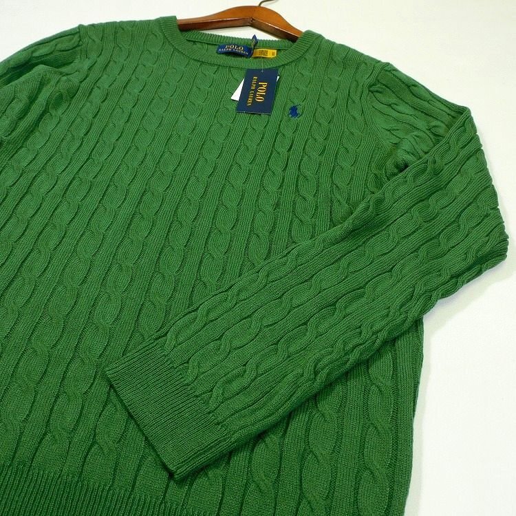 新品 即決 定価27,500円 ポロ・ラルフローレン コットンセーター ケーブルニット M グリーン クルーネック POLO RALPH LAUREN 【4618】
