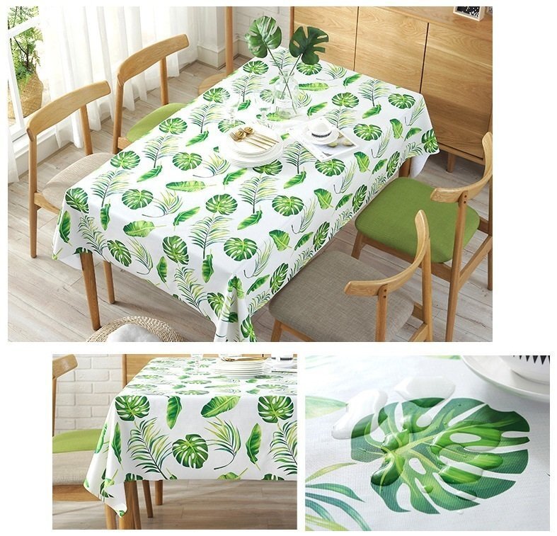 テーブルクロス モンステラ PVC製 防水 防油 加工 長方形 180cm×137cm ランチョン ティーマット テーブルリネンセットI-011