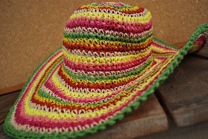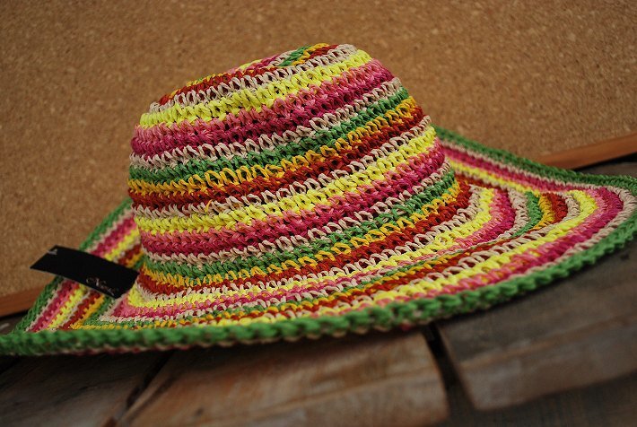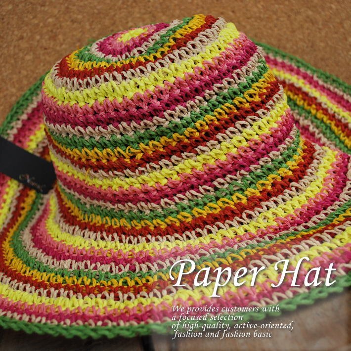 ペーパーハット カラフル ストライプ編み サマーハット レディース 夏 おしゃれ マルチカラー マルチ ボーダー NLH-085 MULTI-A / 新品