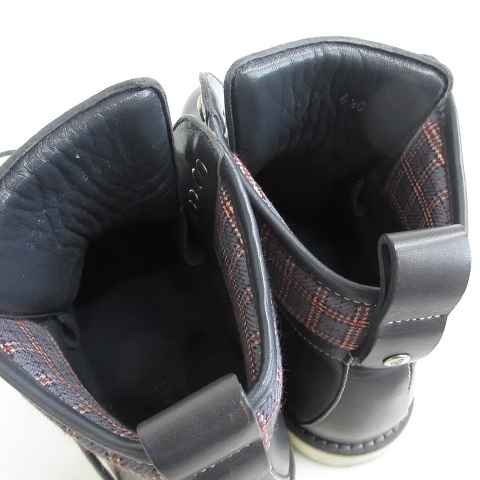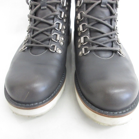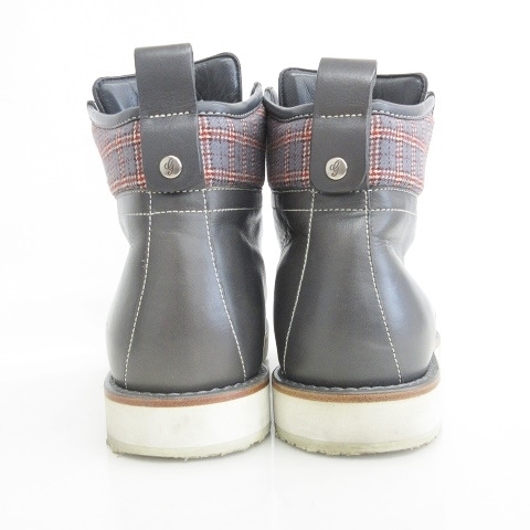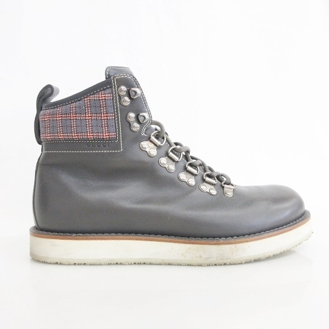 グッチ GUCCI ブーツ トレッキングブーツ ショートブーツ レザー 無地 チェック 270176 グレー 6 1/2 ☆AA★ メンズ