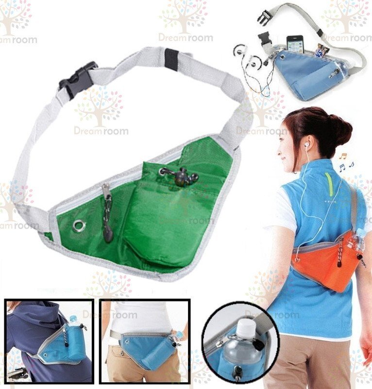 イヤホンホール付 トライアングル ランニング ポーチ グリーン 軽量 ウエストバッグ 反射素材 夜間反射 旅行 遠足 サイクリング 登山 多機能