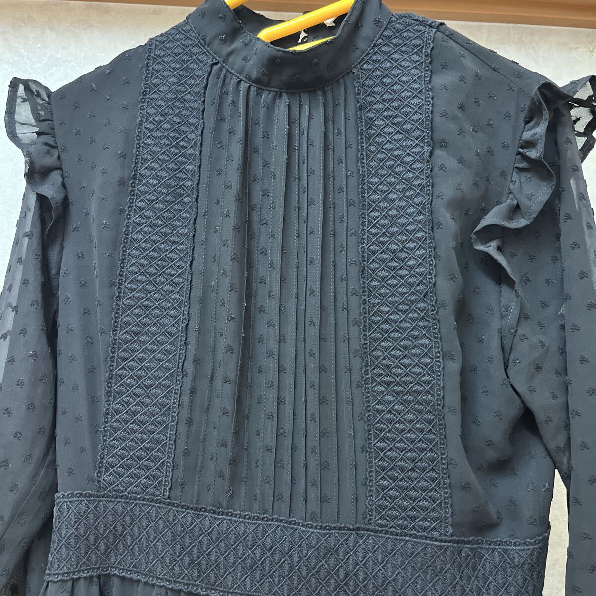 ★SLY★スライ ワンピース 長袖 M 黒ブラック ロング丈 ドレス シースルー レース 披露宴 二次会にも 裏地付き ポリエステル100% です。