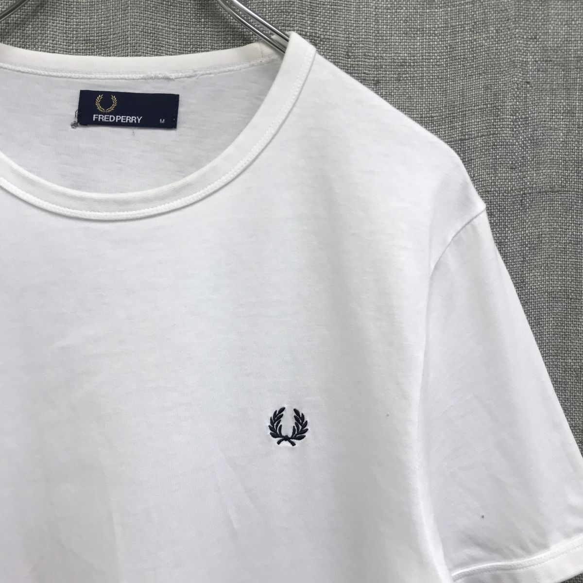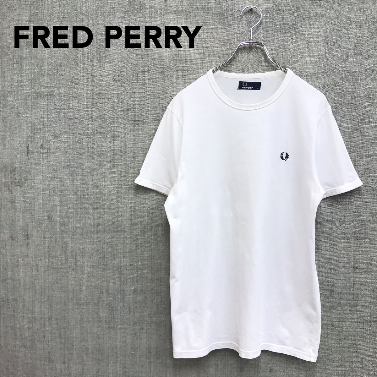 2H1932-R◆FRED PERRY フレッドペリー 半袖Tシャツ◆サイズM メンズ 紳士 トップス 綿100% コットン ワンポイント ホワイト 白