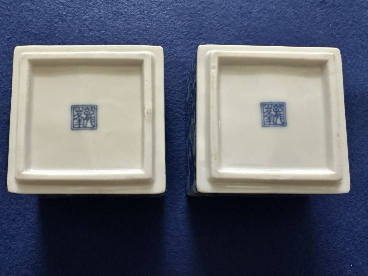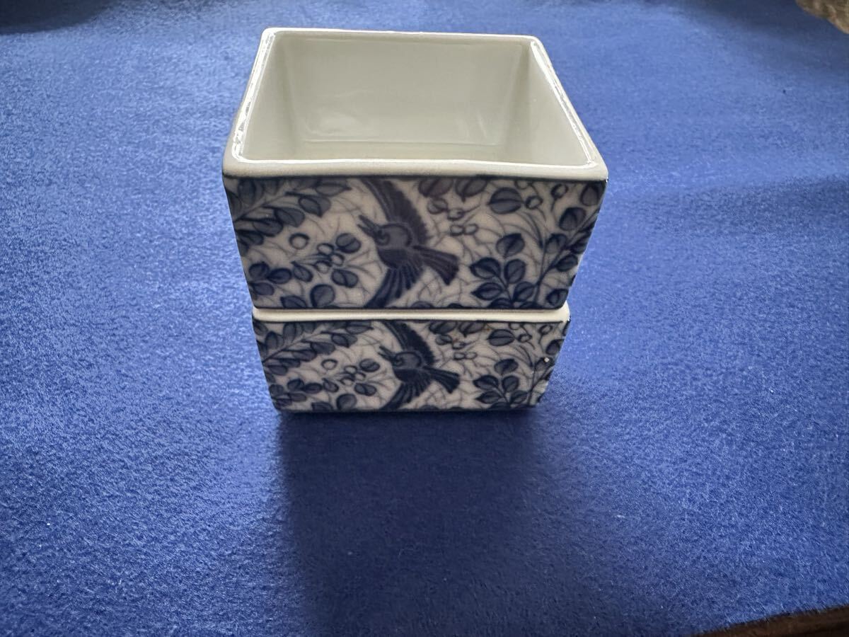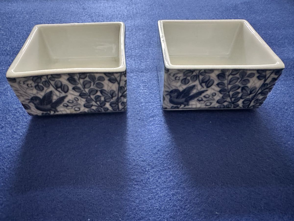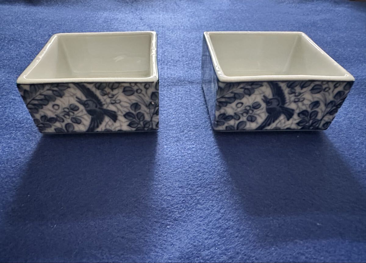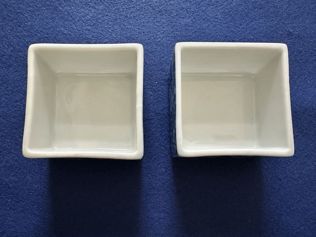 三洋陶器 龍峰窯の染付の小さい角鉢2つです。