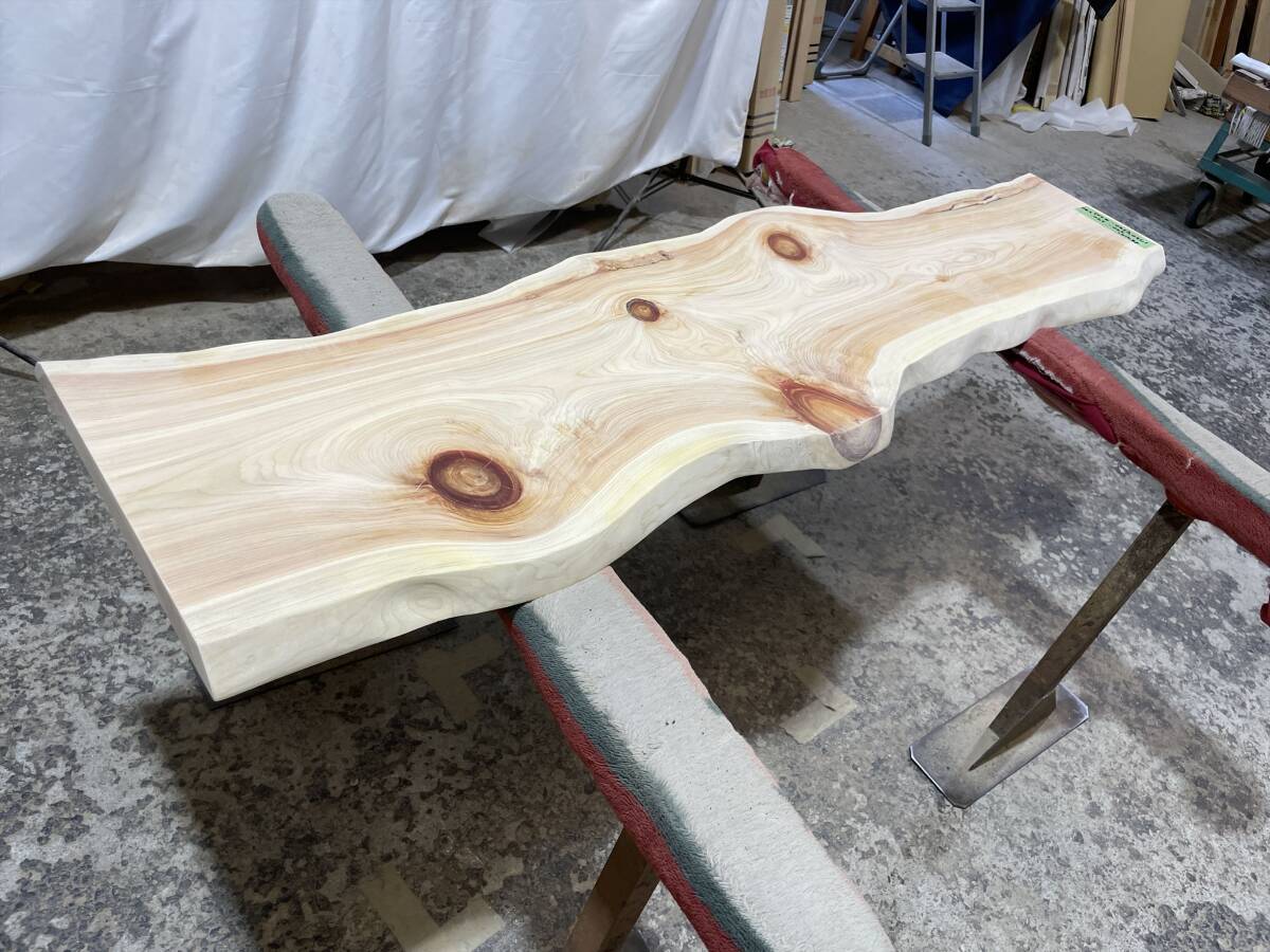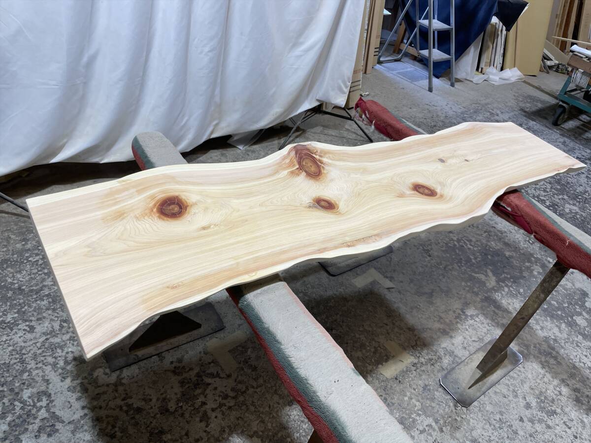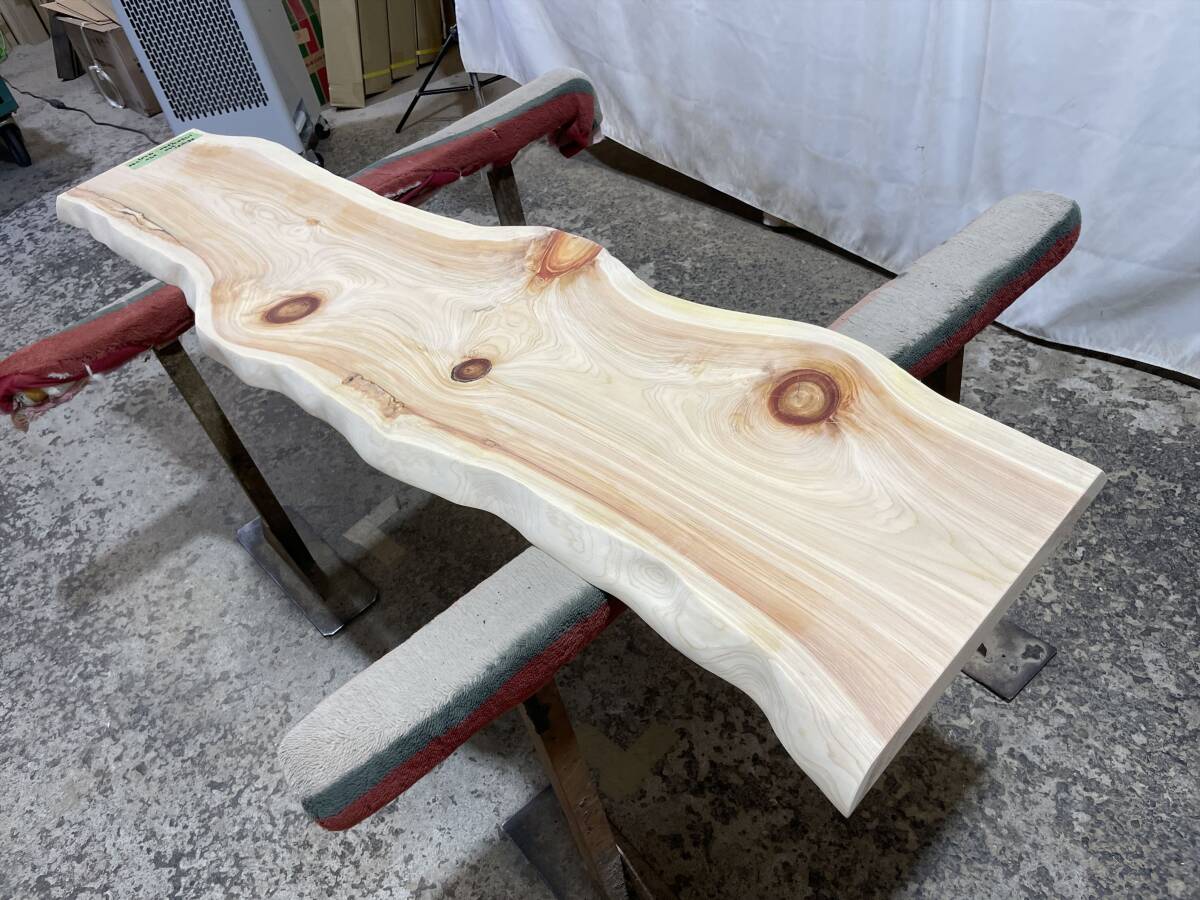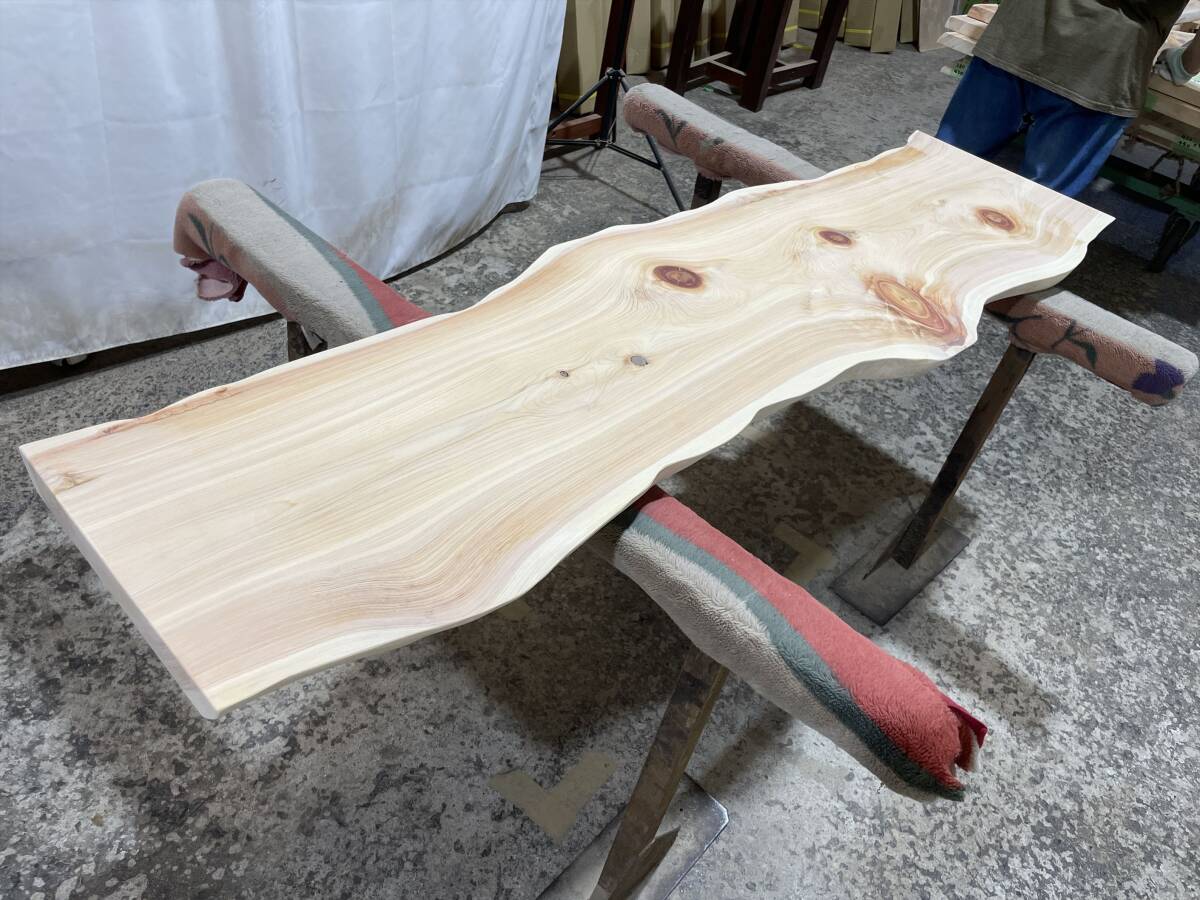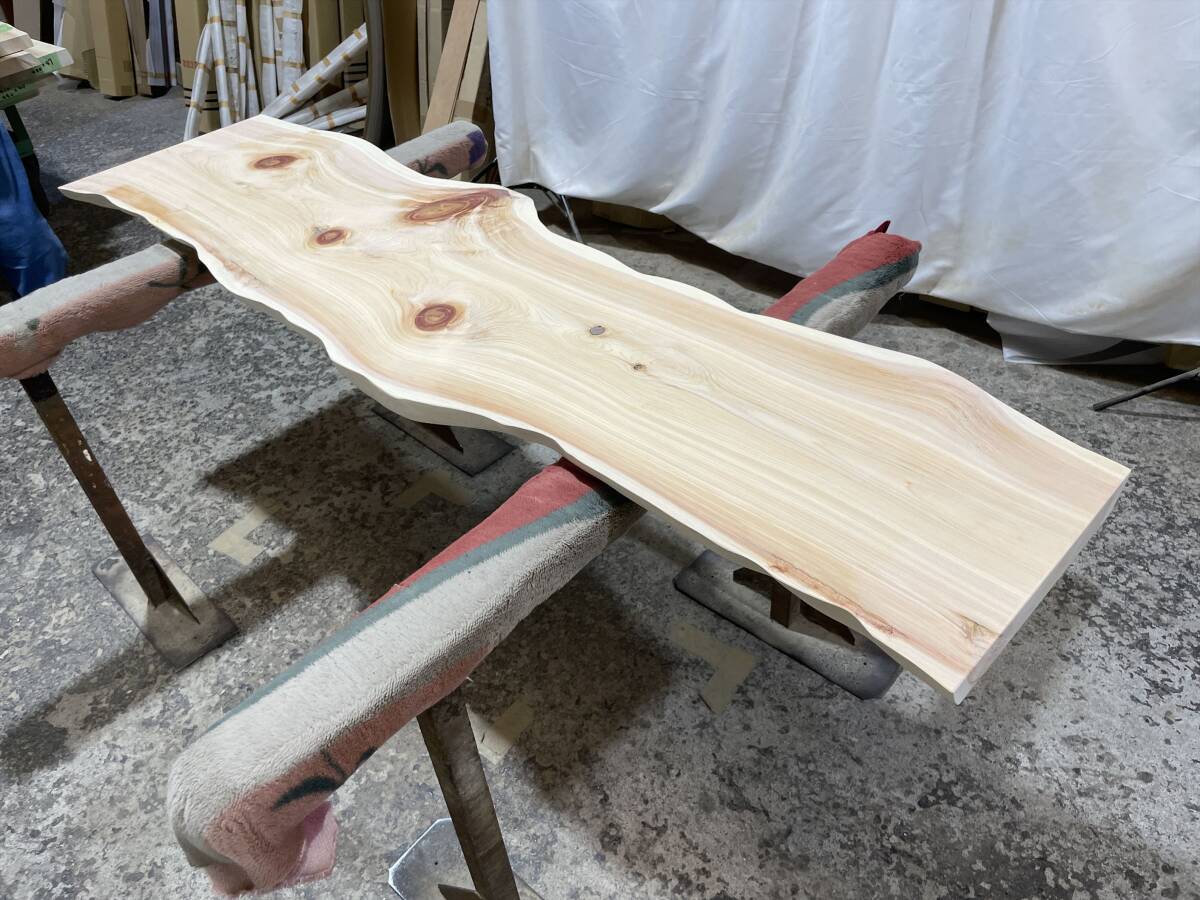 プレナーにて平面出し処理の後、耳を研磨し240番のペーパーで仕上げております。