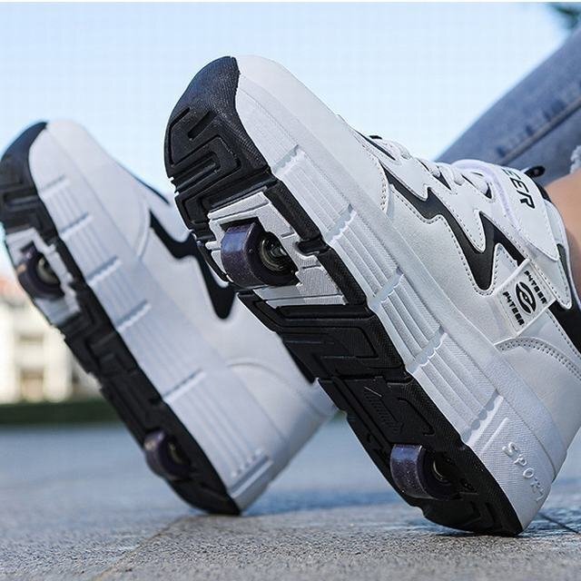 インラインスケート子供用ローラースケート子供普通の子供用運動靴として履けるキッズスニーカーベルクロ&シューレースローラースケート靴 【アッパー】:合成繊維 【インナー素材】:メッシュ 【ソール】:ゴム 【クローズ】:ベルクロ/レース 【ホイールタイプ】: 2輪 【ヒールの高さ】:2 cm 【デザイン】: アウトソールの隠し格納式ホイール。アウトソールは高品質のゴムでできており、耐久性があり、滑りません。ボタンを押すと、ホイールがポップアップします。ボタンを押し続けると、ホイールが押し戻されてロックされます。 かかとのボタンからローラーをポップアップして非表示にすることができます。ローラースケートと通常のスポーツシューズの両方を使用できます。これらのスケートはまた非常に快適でスタイリッシュです。