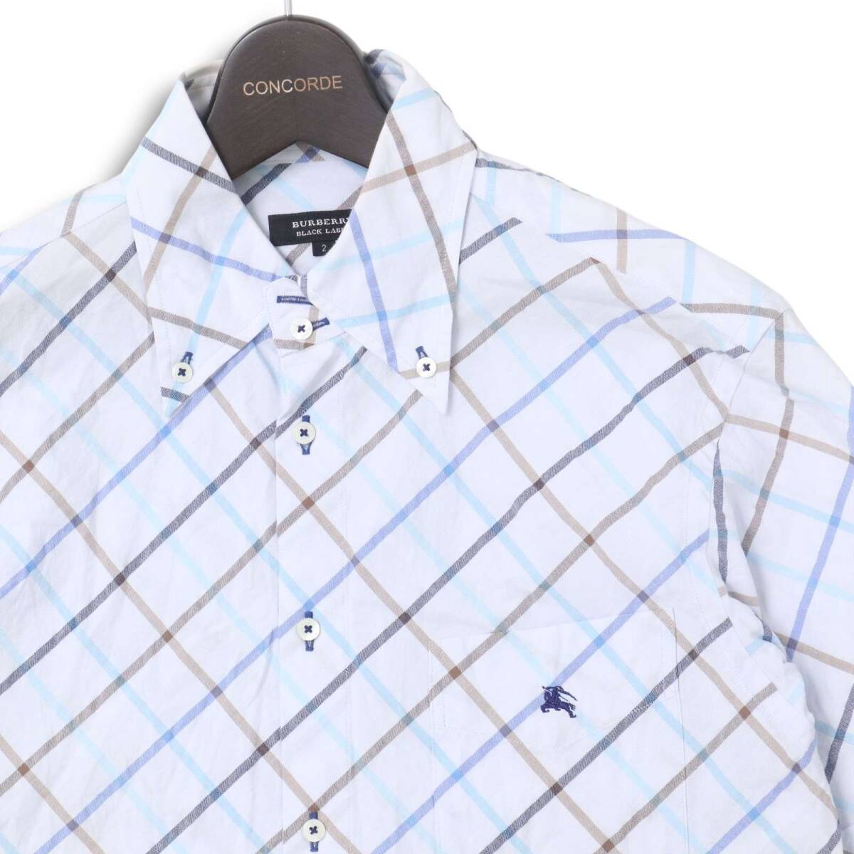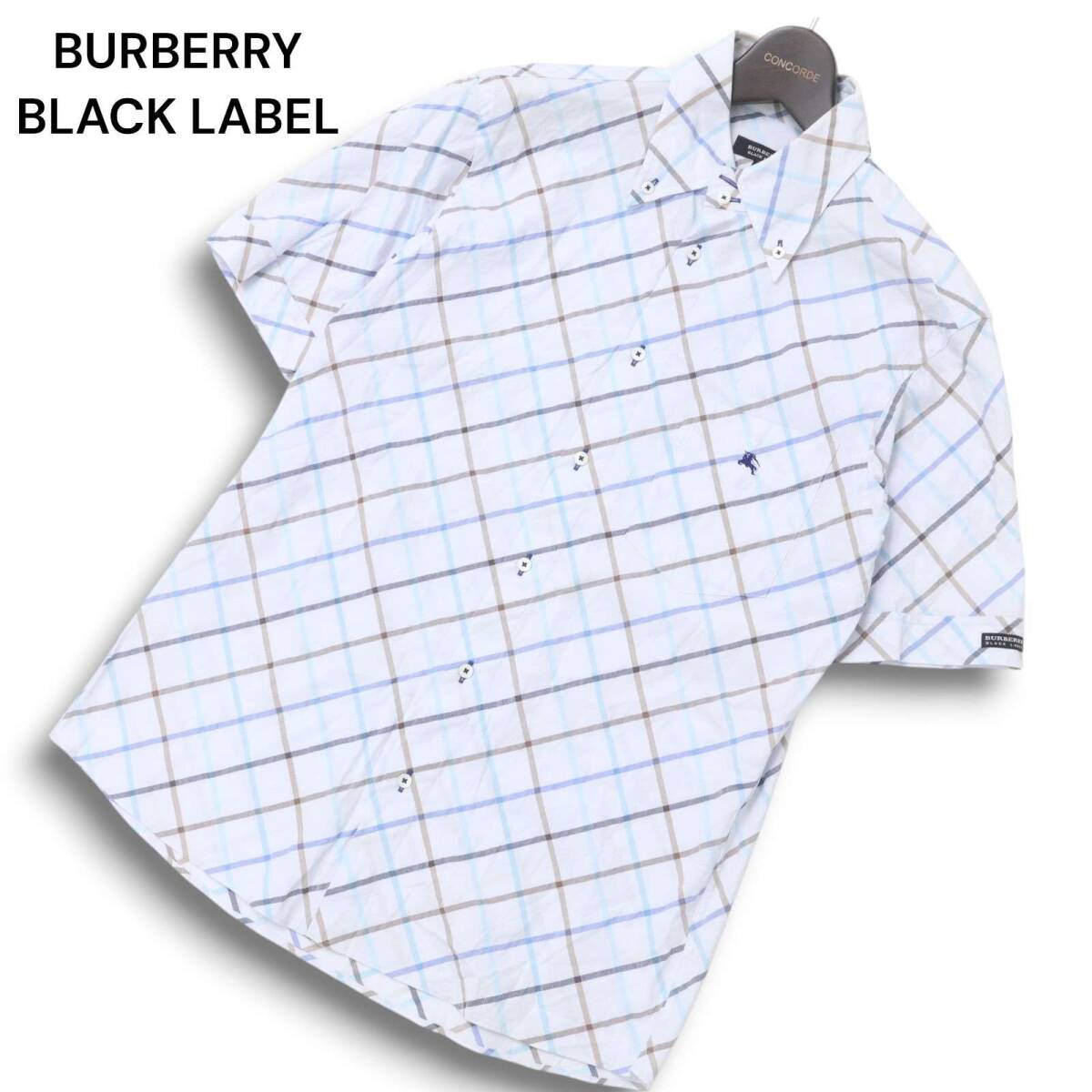 BURBERRY BLACK LABEL バーバリー ブラックレーベル 春夏 ホース刺繍★ チェック 半袖 ボタンダウン シャツ Sz.2 メンズ