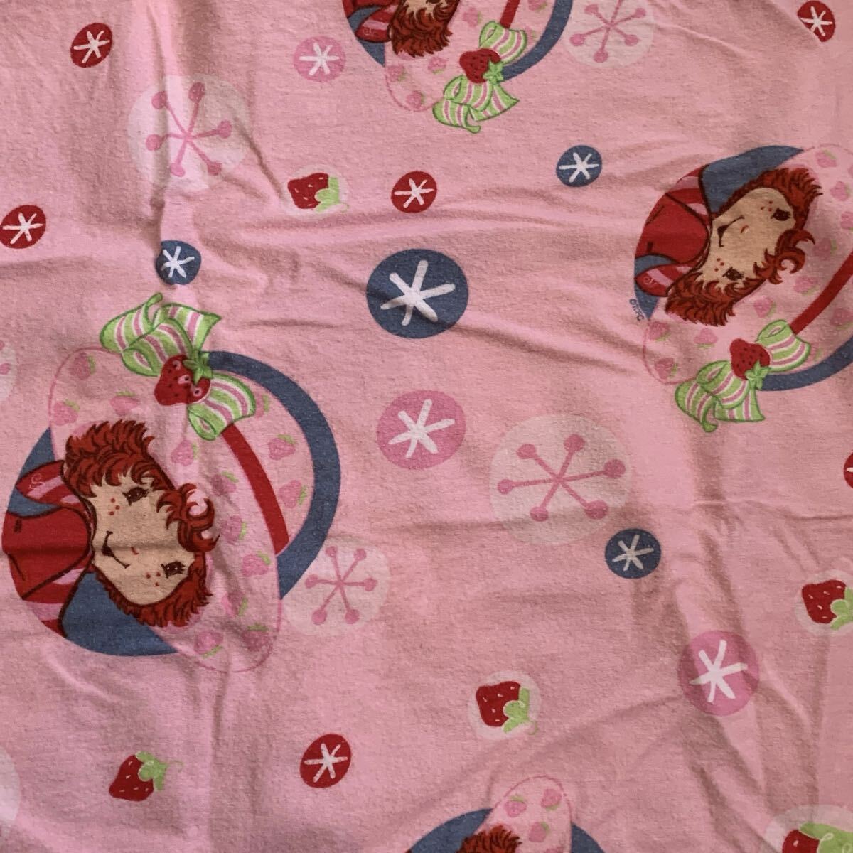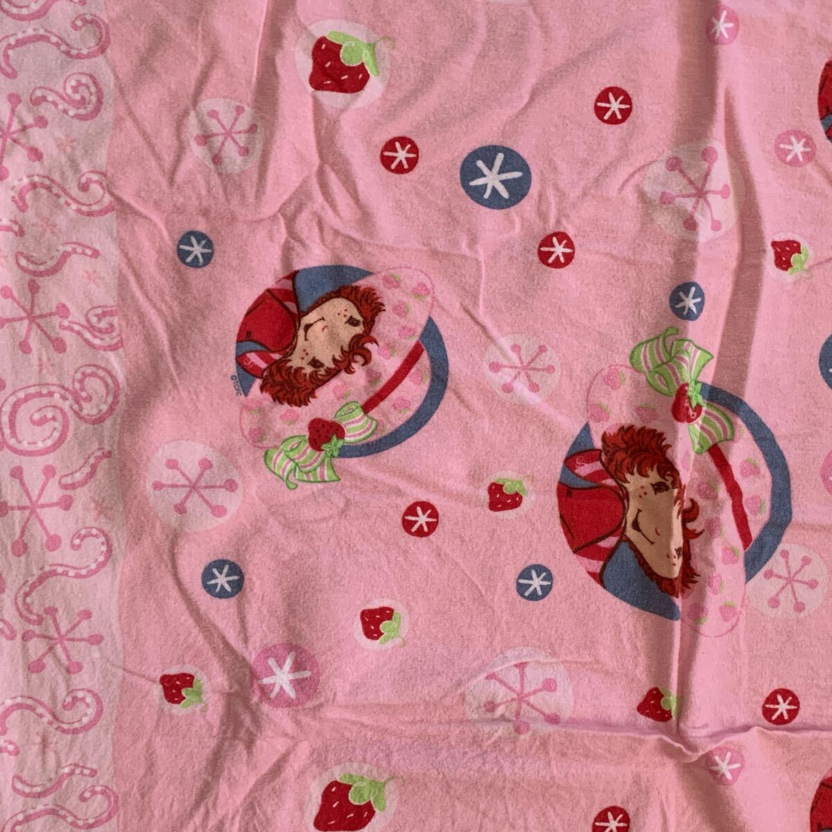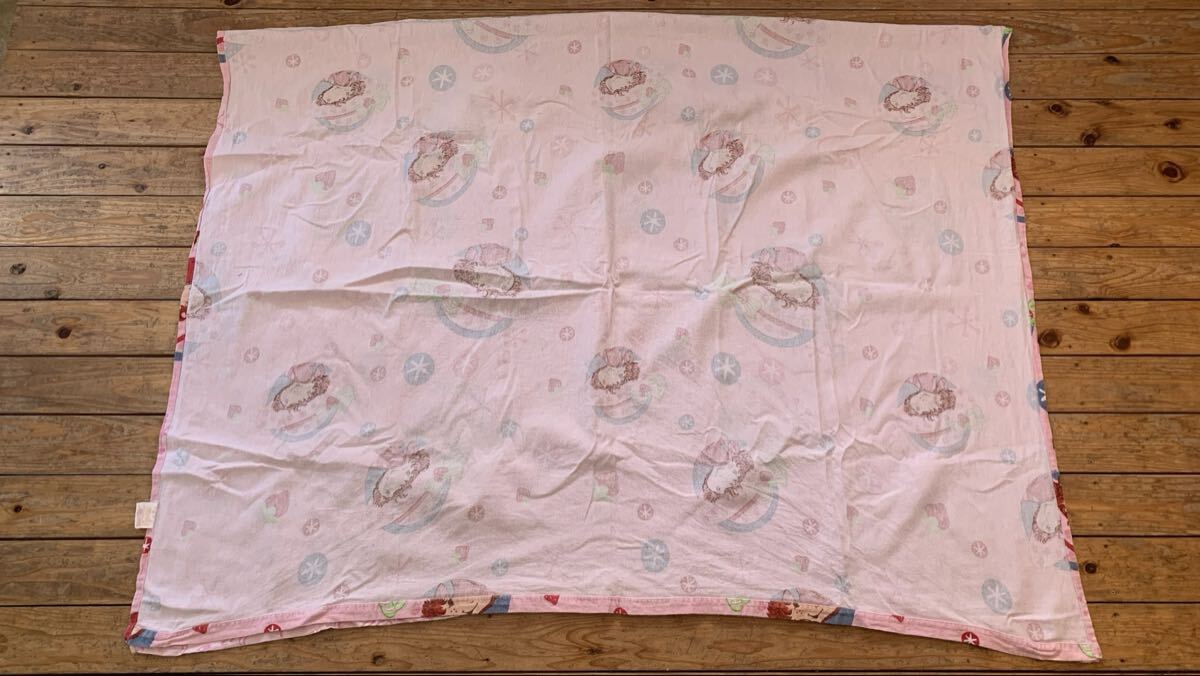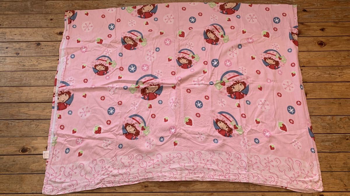 アメリカで購入したセカンドハンド(古着)の、ストロベリーショートケーキのベッドシーツです。