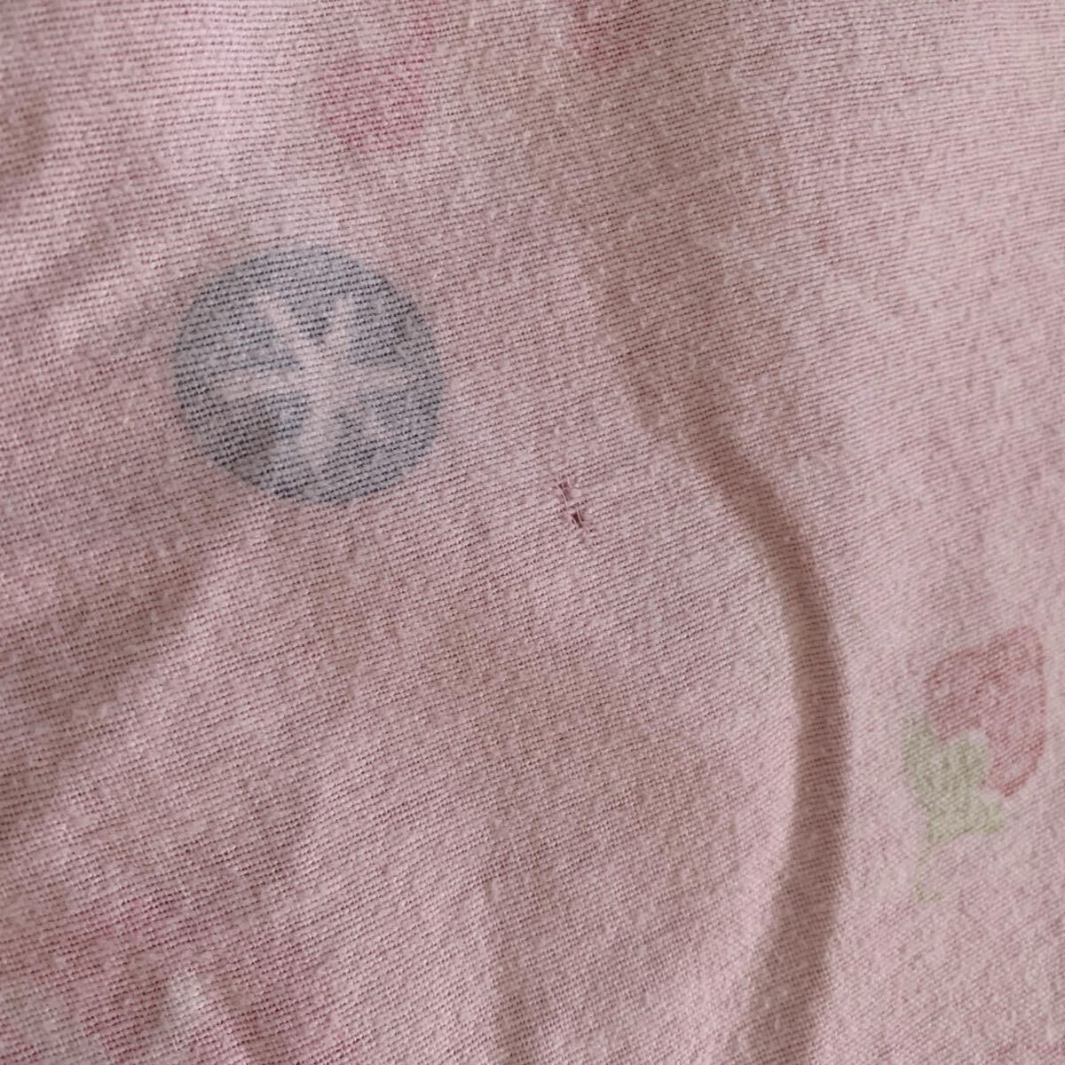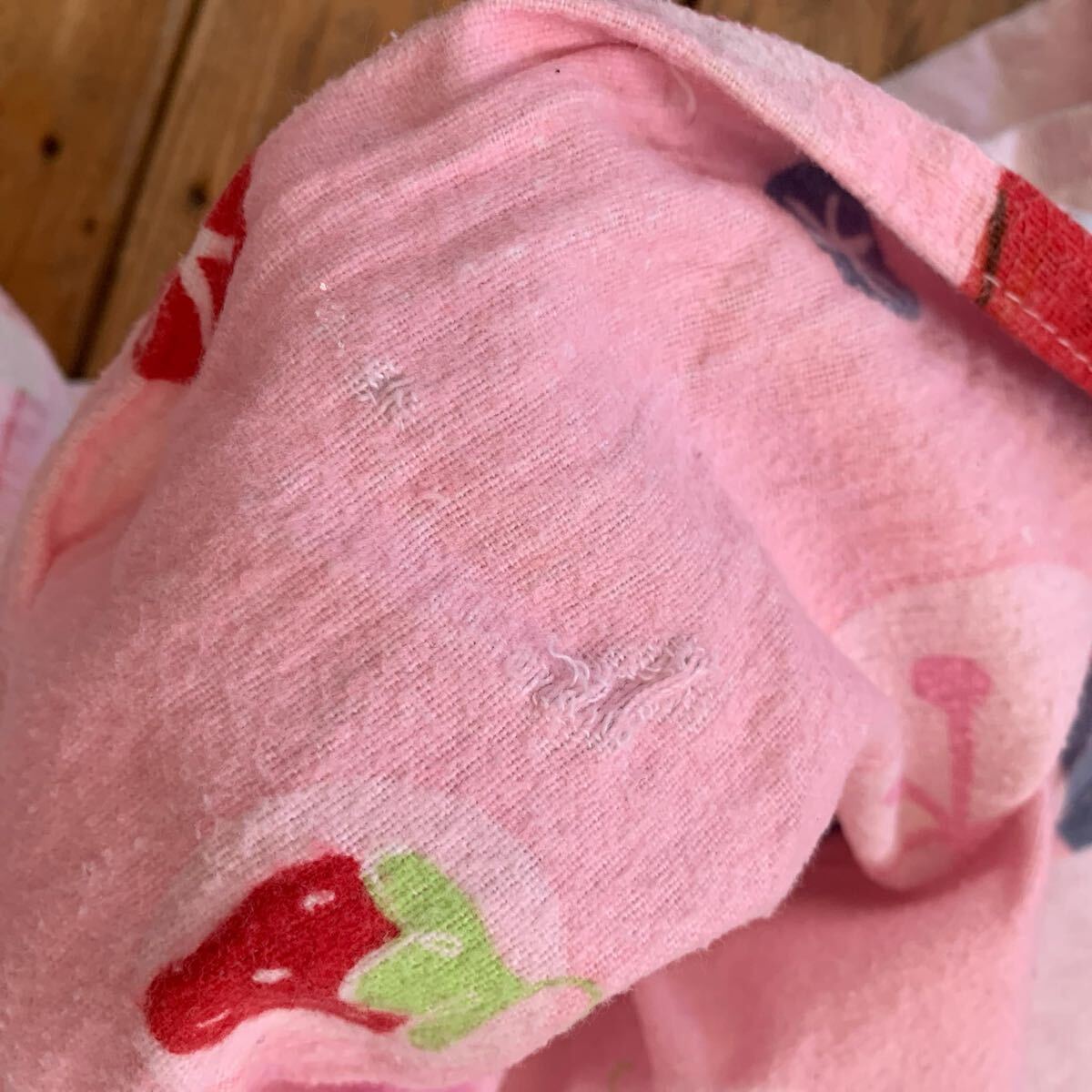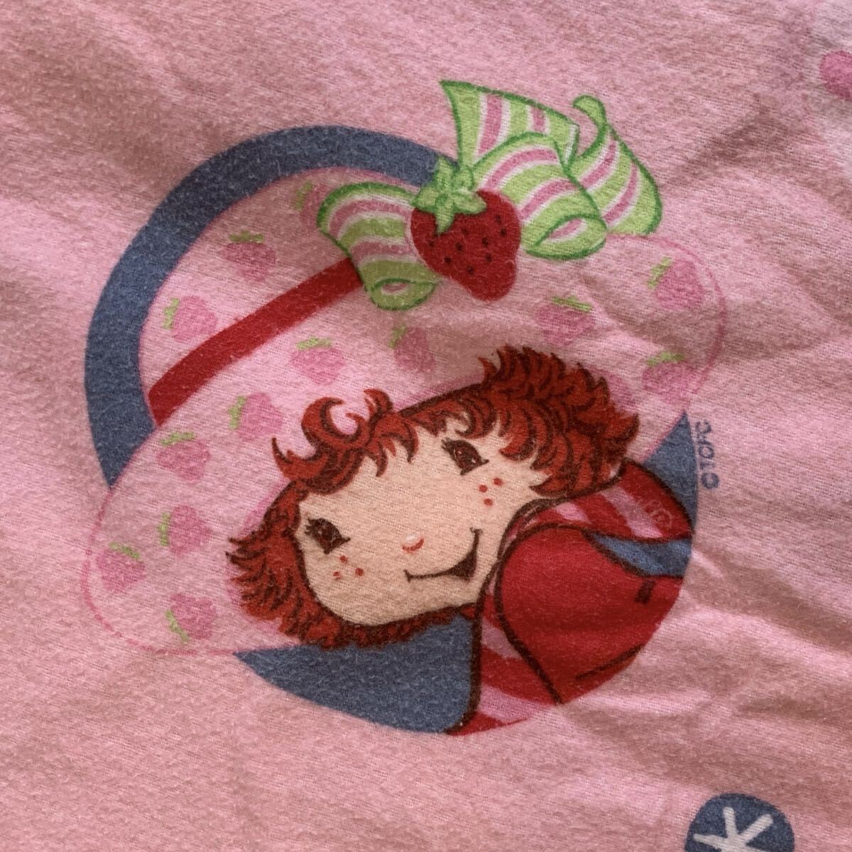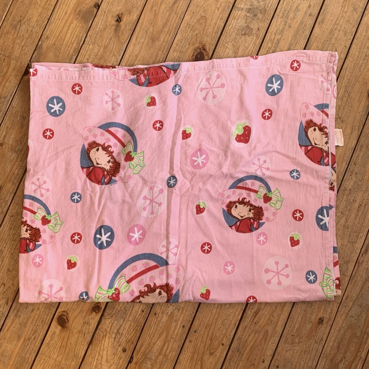 アメリカで購入したセカンドハンド(古着)の、ストロベリーショートケーキのベッドシーツです。