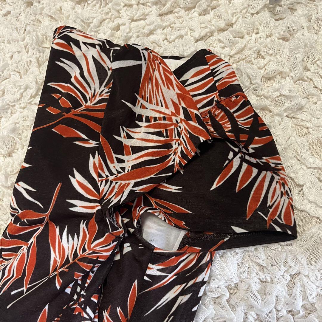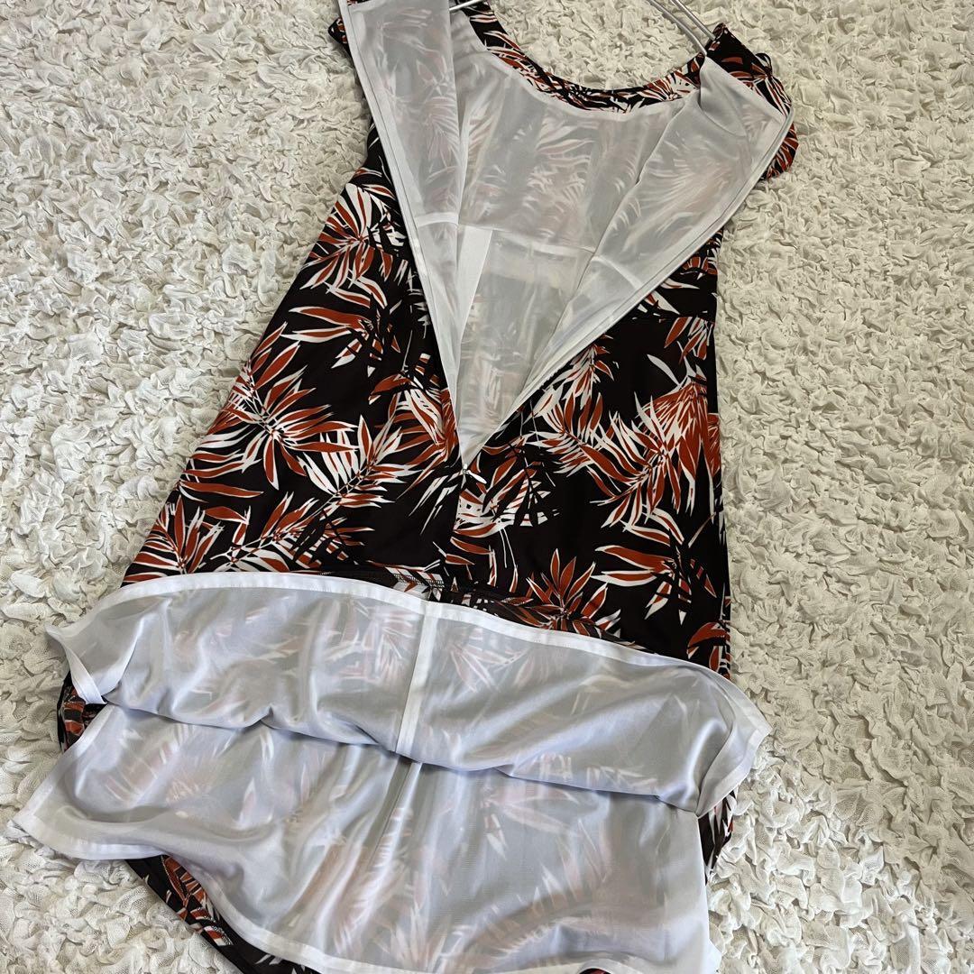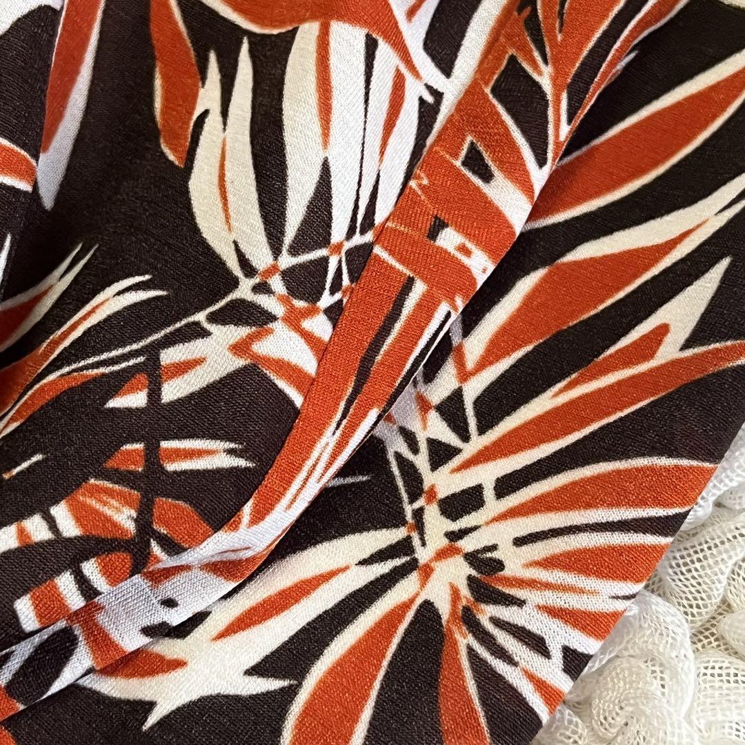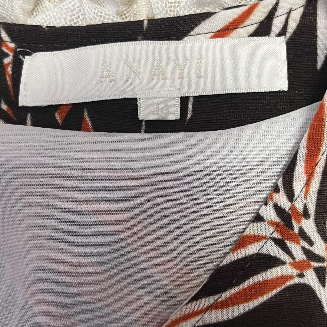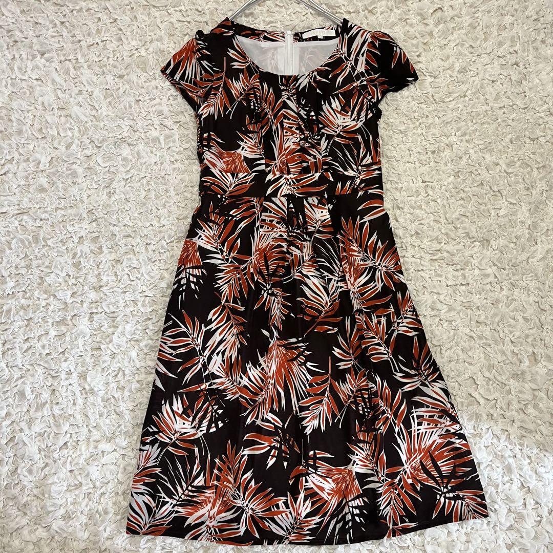 ■アイテム: ストレッチ【アナイ ANAYI】ヤシの葉っぱ 南国柄 総柄 膝丈ワンピース 36