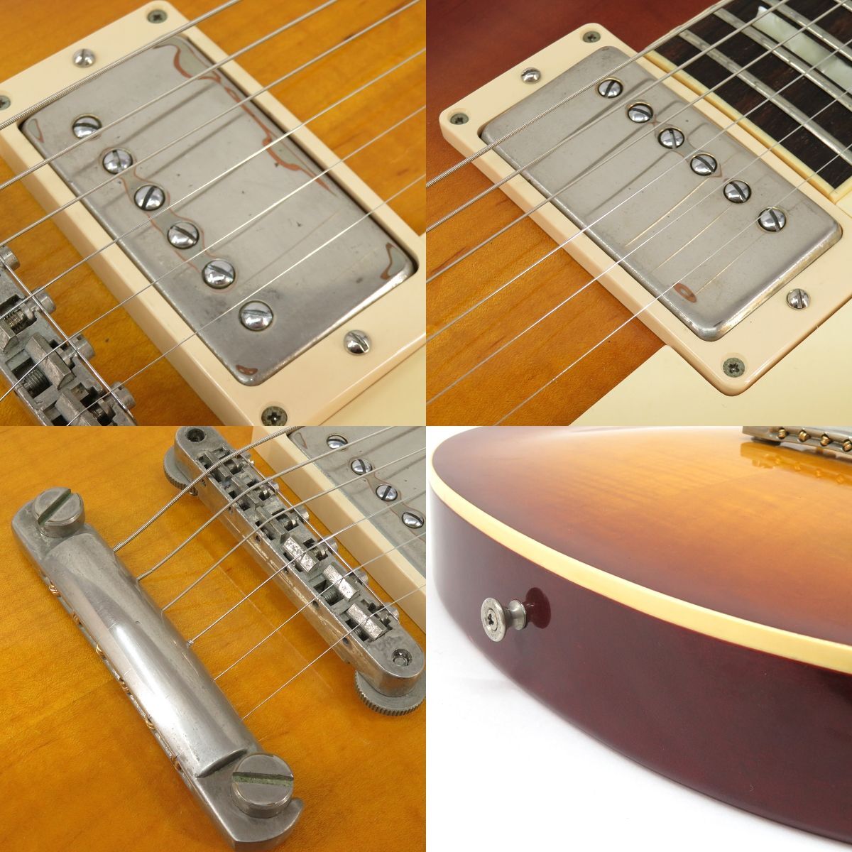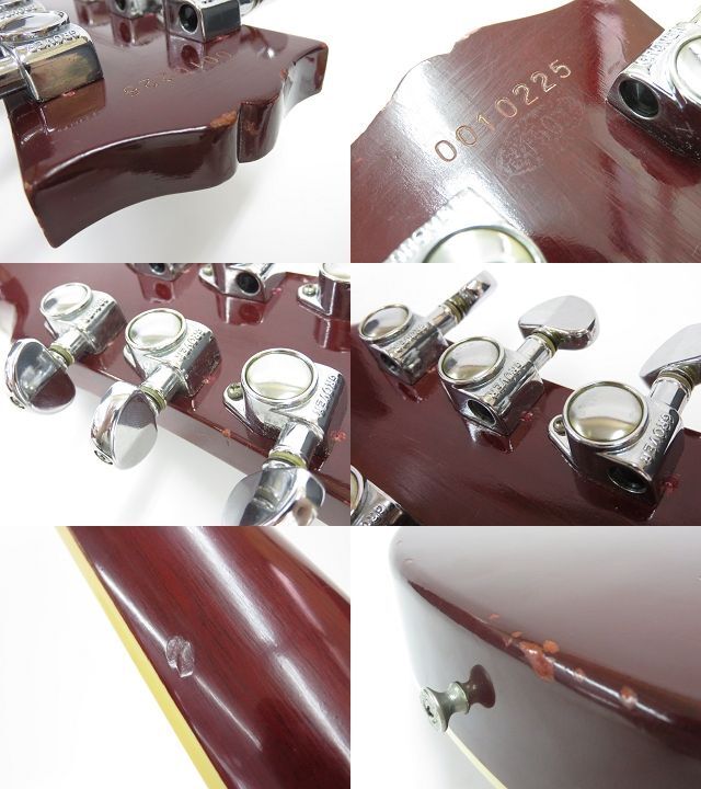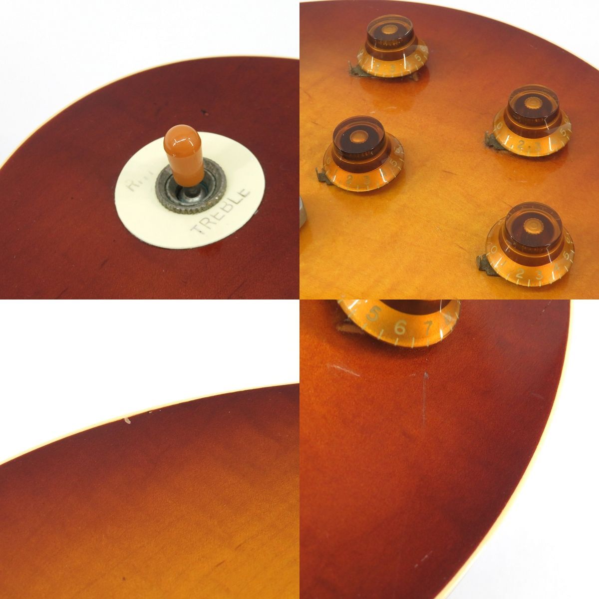 092s☆Tokai トーカイ 東海楽器 LS150 サンバースト Love Rock レスポール エレキギター ※中古 □付属品:ハードケース(擦れ、キズ、ヨゴレ、剥がれ、糸抜け、金属パーツにサビ有) ※画像にあるもので全てです。 □状態 セットネック、現在ネックはストレート、フレット残約8割。 全体に擦りキズ、打痕、所々に塗装剥がれがございます。 ヘッド裏に「150」のステッカー跡がございます。 バックパネルのビスが1箇所、欠品しております。 ペグ、PUが交換されております。 □スペック ボディ:メイプル+マホガニー ネック:マホガニー 指板:ハカランダ PU配列:H-H フレット数:22f コントロール:2Vol、2Tone、3Way SW 重量:約4.2kg シリアル:0010225 全体に使用に伴うダメージはございますがまだまだご使用いただける1本です。 ※画像では判別しづらいUSED品特有の薄い汚れや薄いキズ、細かいキズなどある場合があります。 |
