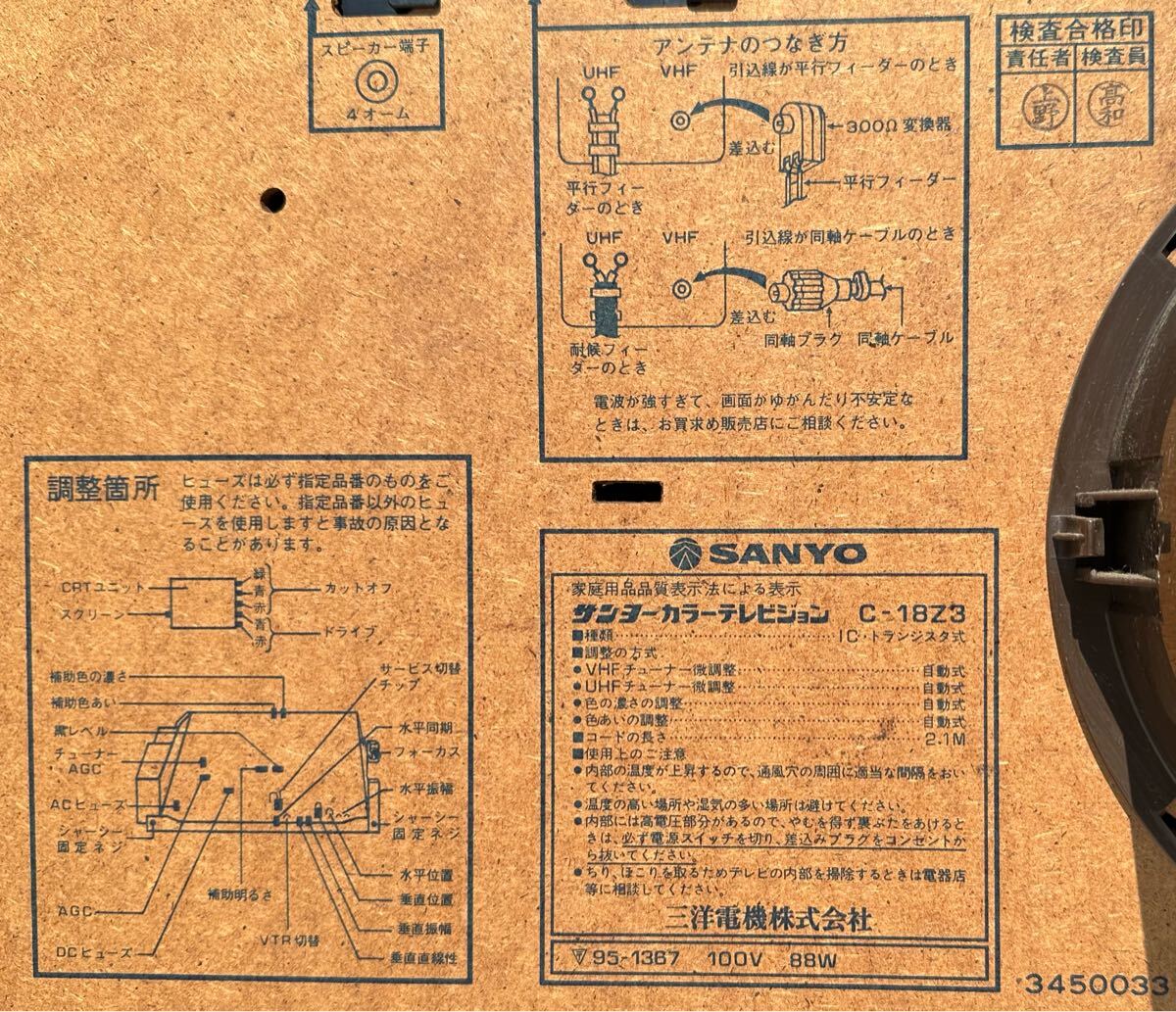 時代物 SANYO 三洋電機 カラテレビ C-18Z3 100V ブラウン管 レトロ 1978年製