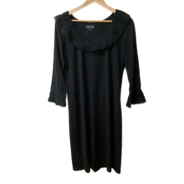 アニエスベー agnes b サイズ2 M - 黒 レディース クルーネック/長袖/ひざ丈 ワンピース