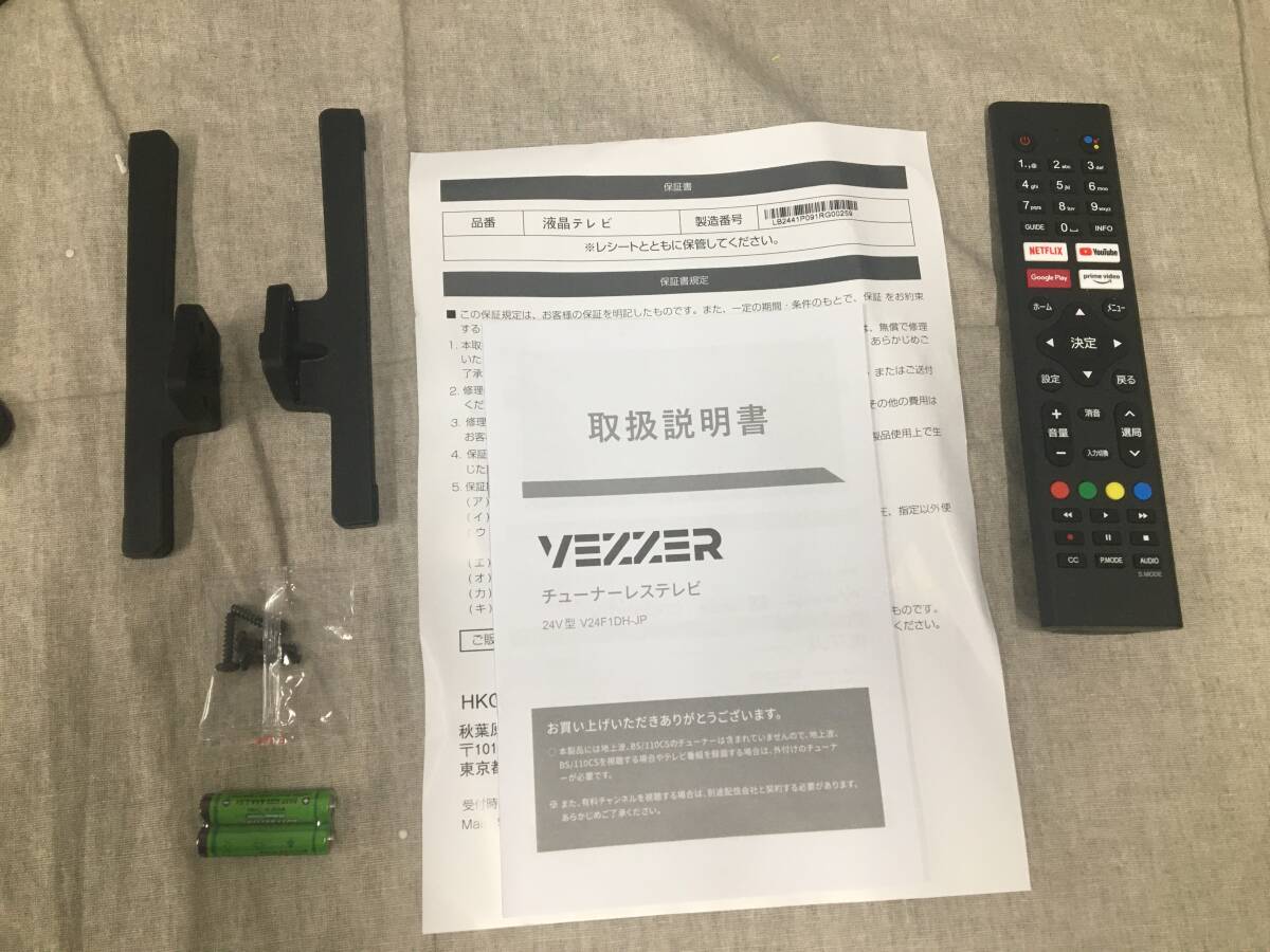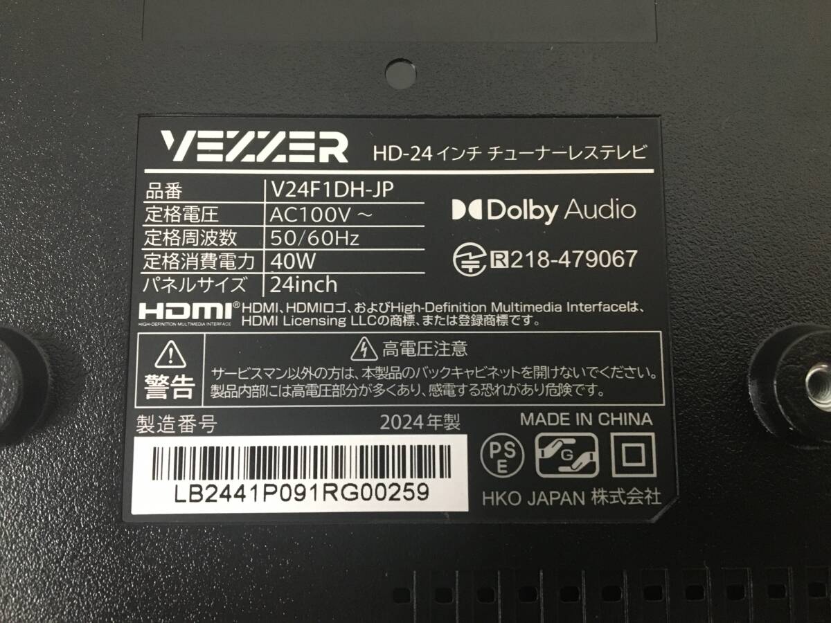 VEZZER チューナーレス テレビ 24インチ 720P Google TV ネット動画対応 スマート 液晶 HDR対応 Dolby Audio Google Cast内蔵 音声検索 メーカー型番 24F1D VESA規格