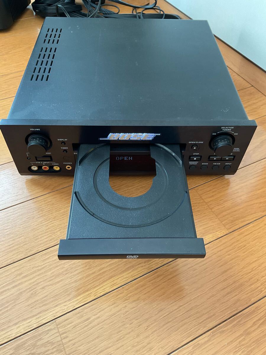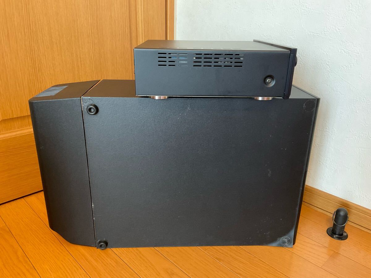 写真のベースモジュール、DVD−5、スピーカーケーブル、ベースモジュールとDVD−5の接続ケーブル、電源コードのみで他に付属品はありません。(サテライトスピーカーやリモコンは無し)