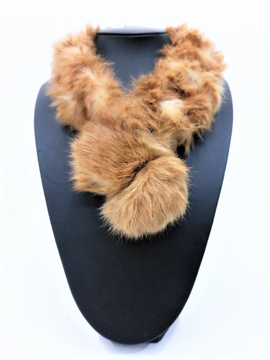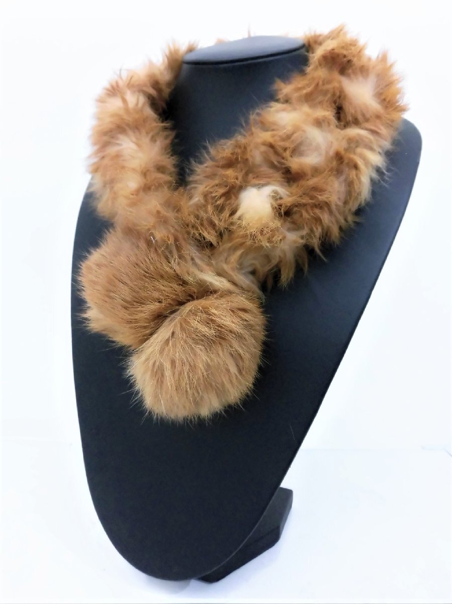 ファーマフラー ポンポン付き ブラウン FUR [23]☆P