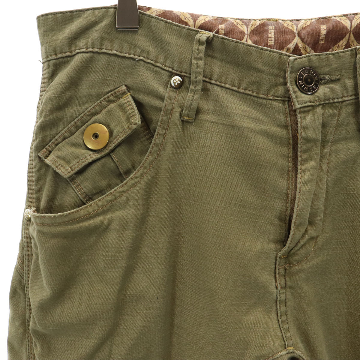 詳細 | 全体的にスレ、色褪せ、スレ汚れ、ヨレ、所々に汚れ、両裾・股などに擦り切れ、ボタンに錆び、剥げあり。内タグが薄くなっており素材不明です。古着にご理解の上ご購入をお願い致します。 |