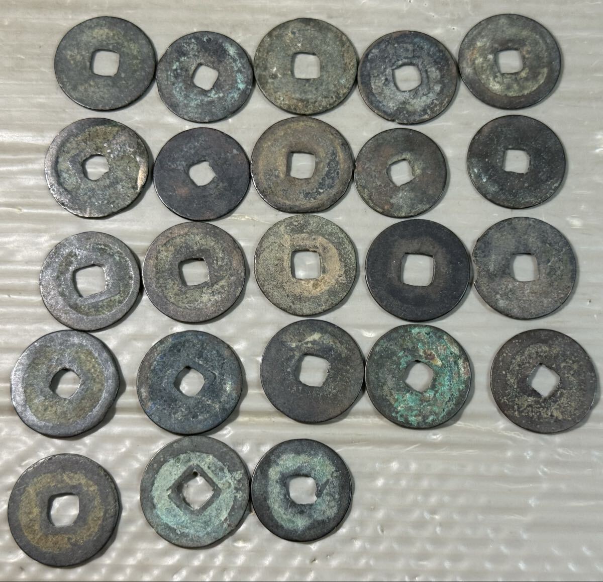 K525 【 中国美術 渡来銭 古銭 光緒通宝 開元通宝 天元通宝 文久永宝 祥符元宝 乾隆通宝 他 】計23枚 詳細不明 穴銭 古銭 中国銭?