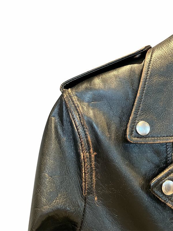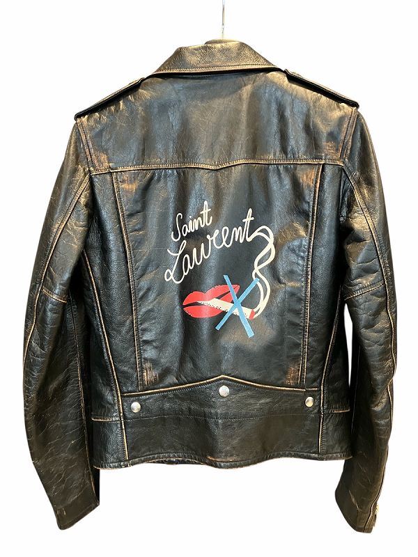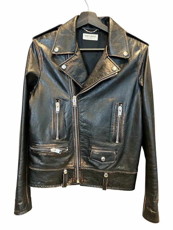 サンローラン パリ SAINT LAURENT PARIS スモーキングヴィンテージ加工レザー ライダースジャケット 46 黒 ブラック 483225 メンズ