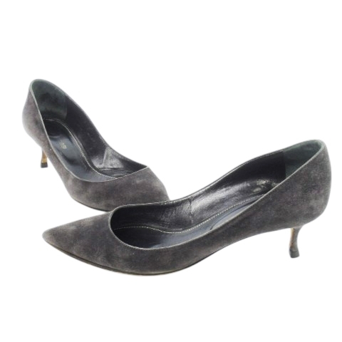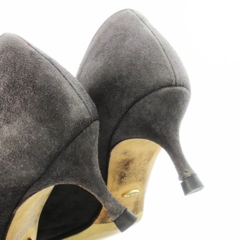 セルジオロッシ Sergio rossi パンプス ミドルヒール アーモンドトゥ レザー 革 スエード 35.5 22.5cm グレー /CK13 ■GY18 レディース