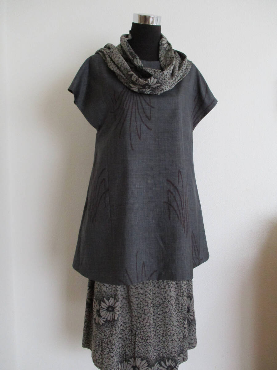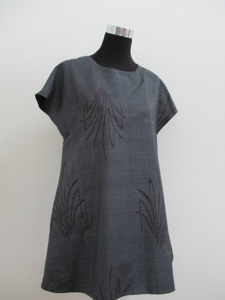 ★着物リメイク★大島紬★フレンチスリーブブラウスチュニック★