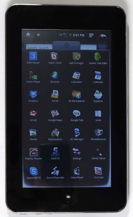 性能はWEB上でお調べください。出品は画像の物のみです。現在は初期化している状態です。使用品ですので擦れや汚れが有ります。アンドロイドのバージョンは1.5です。。正確なメモリーの容量もわかりませんが、パソコンに繋げると969MBと表示されるので、おそらく1GBくらいだと思われます。詳しい性能はネット上でお調べください。ホームボタン側のモニター4隅の角に液晶がきちんと表示されてなく、バックライトのみ光っている感じです。恥の方なのでそれほど影響はないです。wifiには繋がります。メディア(音楽と映画)入れてみるとちゃんと見る事はできましたし音もきちんとでました。起動ボタンや音調整のボタンもきちんと動作しております。バッテリーの保ち時間は音楽を入れて連続再生をしましたが30分くらい保ちました。実際の使用でバッテリーはどのくらい保つかわかりませんので、このデーターは参考になさってください。バッテリーは消耗品ですのでいかなる状態であったとしてもノークレームです。バッテリーのみだと極端に動作時間が短いのでモバイルバッテリーを繋げてか電源アダプターを繋げれば長時間の使用は可能です。各ポートはUSBポート以外のチェックは出来ておりません。パソコンとは同期はできました。分かる事は以上です。このような状態ですのでお取引後はいかなる理由がありましても返品はできませんしクレームもお受け出来ません。